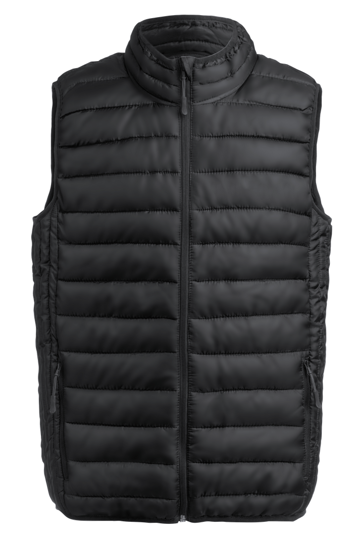 Weste au warmem und weichem Material aus 100% Polyester. Aus extra leichtem, kompaktem, wasser- und winddichtem Material, mit Innenwattierung. Reißverschluss mit Zipper und großen Seitentaschen. Kragen mit Reißverschluss und Knopfleiste und Seitentaschen mit Zipper. Inklusive praktischer Tragetasche. Erhältlich in den Größen S, M, L, XL, XXL.