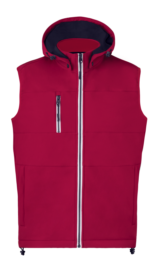 Weste aus strapazierfähigem und atmungsaktivem 300g / m2 Softshell-Material. Moderner Schnitt, mit zentralem Reißverschluss, Seitentaschen und praktischer Brusttasche mit Reißverschlüssen und kontrastfarbenen Zippern. Stehkragen mit verstellbarer und abnehmbarer Kapuze. Unterer Saum mit verstellbarem Kordelzug. Wind- und wasserabweisendes Softshell-Außenmaterial und warmes Mikrofleece-Futter in Kontrastfarbe. Erhältlich in den Größen XS, S, M, L, XL, XXL.