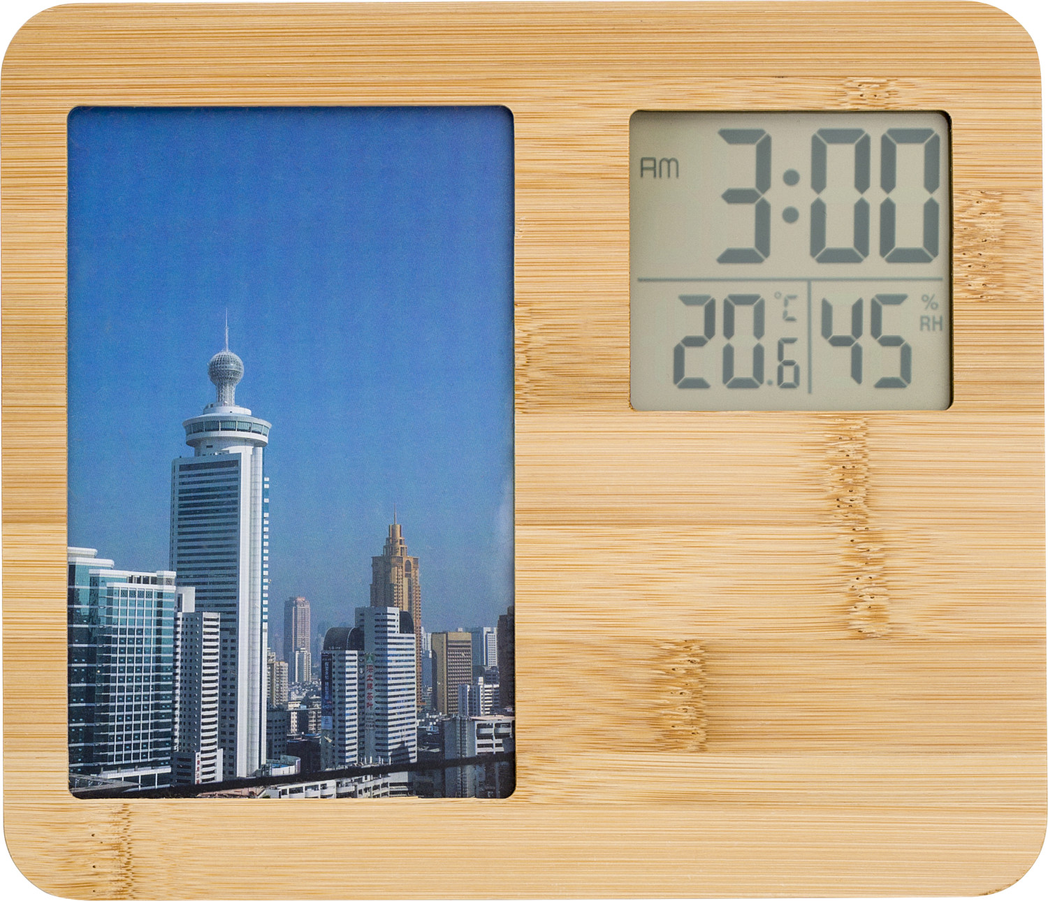 Sasa Bambus Fotorahmen Tischuhr mit Thermometer