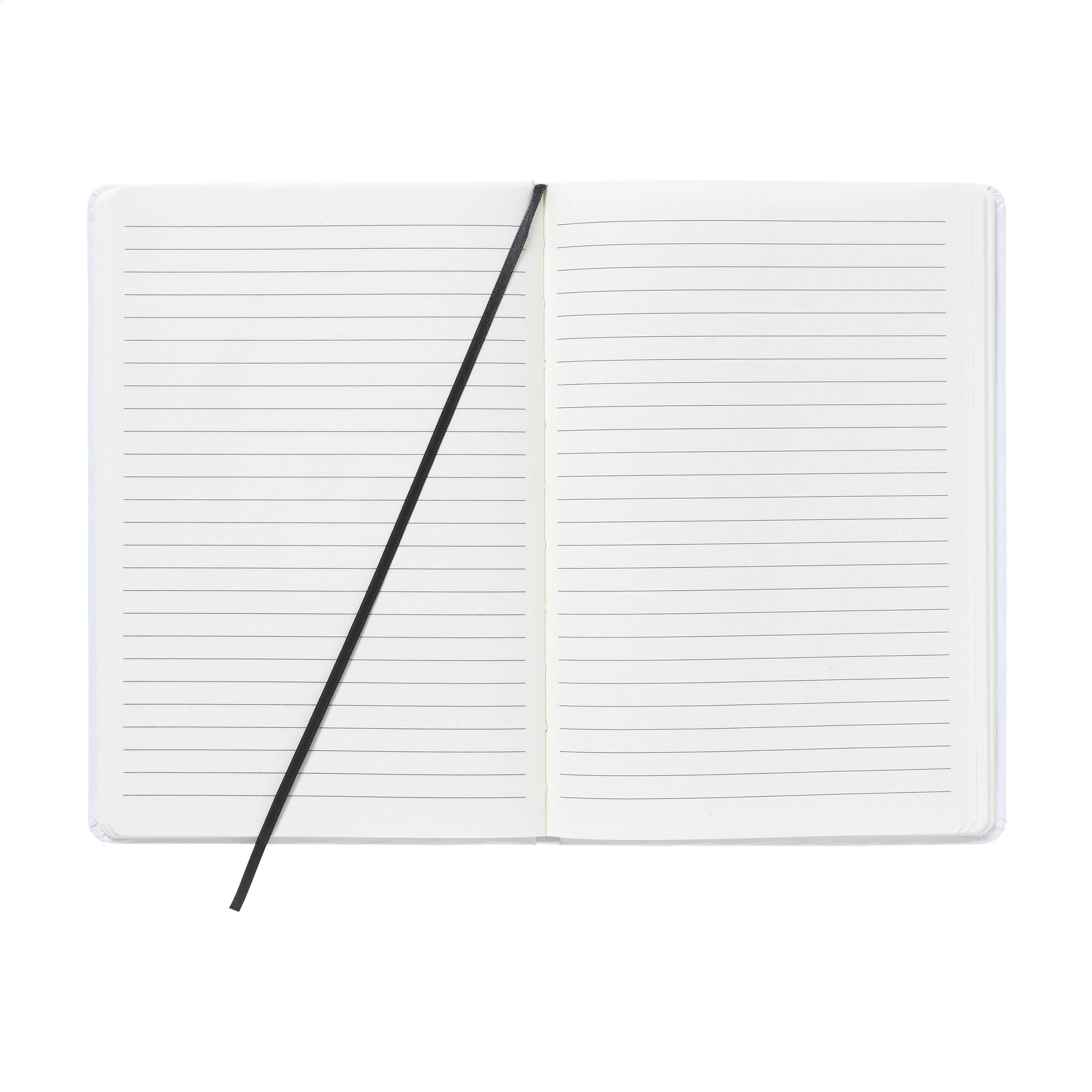Praktisches und handliches Notizbuch im Format A5. Mit ca. 80 Blatt/160 Seiten cremefarbenem, liniertem Papier (70 g/m²), gebundenem Rücken, hartem Umschlag, elastischem Verschlussband und seidener Leselitze. FSC Mix zertifiziert.