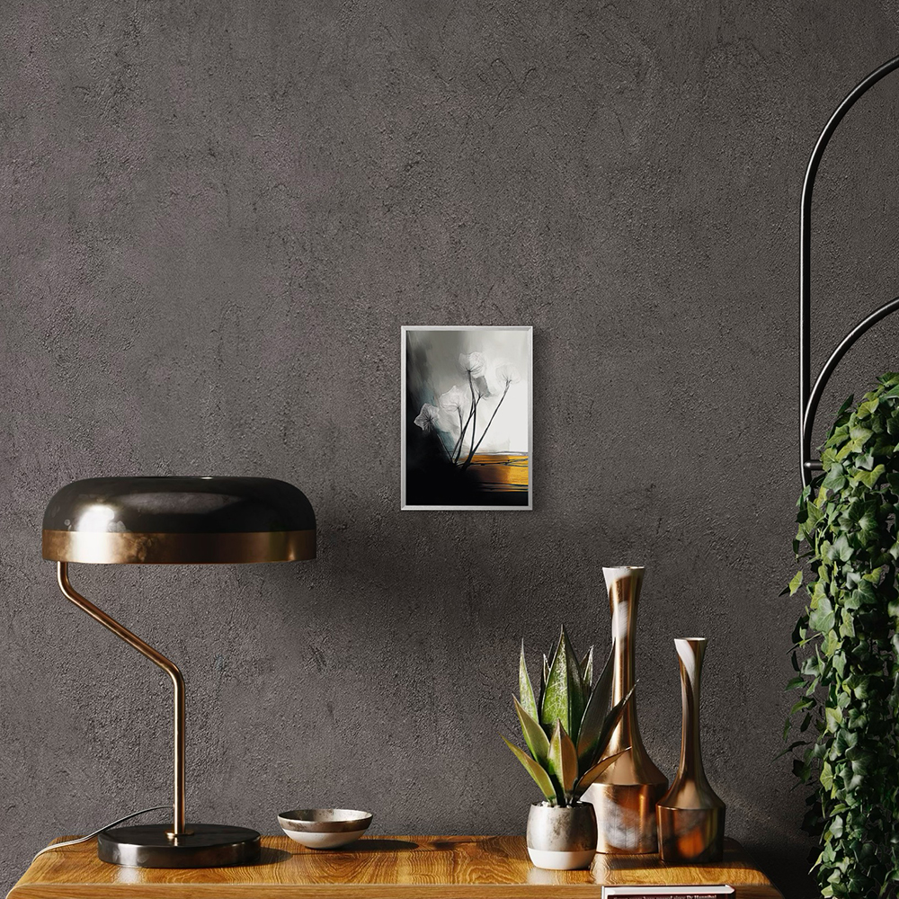 „Wicked Flowers“ beeindruckt durch seine tiefen Schwarztöne, die durch leuchtende Akzente in goldenem Orange ergänzt werden. Die dynamischen, fast tänzerischen Linien der Blumen schaffen ein visuelles Erlebnis, das jeden Betrachter in seinen Bann zieht. Dieses Kunstwerk vereint auf meisterhafte Weise Kunst und Natur und wird so zum markanten Highlight in jedem Raum.