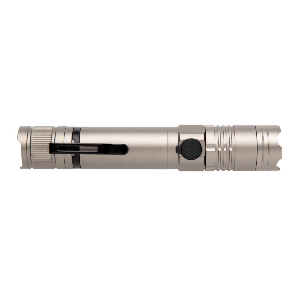 Diese Taschenlampe aus Aluminium laden Sie wieder und wieder auf. Da somit keine Batterien ausgetauscht werden müssen, ist dies eine nachhaltige und verantwortungsbewußte Lösung. Die 3W erzeugen 130 Lumen und leuchten bis zu 200m weit. Mit 3 Lichtmodi: hell, 50% und blinkend. Mit dem IPX 4 Standard kann sie auch bei schlechten Wetterbedingungen zum Einsatz kommen. Die eingebaute 2.200 mAh Lithium Batterie lässt die Lampe für bis zu 8h leuchten und ist innerhalb von 2h wieder aufgeladen. Inkl. Micro-USB Kabel zum Wiederaufladen.
