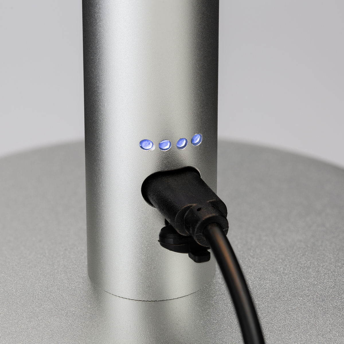 Ganz gleich, ob drinnen oder draußen - die LED-Tischleuchte in Silber / Weiß oder Schwarz / Weiß ist ein schöner Hingucker und schafft schnell behagliches Ambiente. Die transportable Lampe mit den Maßen von etwa 12 x 26,3 cm (DM x H) ist aus Aluminium und Kunststoff gefertigt und hat ein fest verbautes LED-Leuchtmittel in Warmweiß mit 200 Lumen. Sie hat bei höchster Dimmung eine Laufzeit von bis zu 75 Stunden. Die Lampe wird per Touch-Punkt an der Stange an- und ausgeschaltet und dreifach gedimmt (100%, 50%, 10%). Der Akku wird mittels USB-C-Anschluss und mitgeliefertem Kabel aufgeladen, die Ladeanzeige zeigt den verbleibenden Ladestatus. Im Regen vergessen? Kein Problem, die Innen- und Außenleuchte hat einen IP54 Spritzwasserschutz. Die Tischleuchte wird in einer hochwertigen Geschenkverpackung in Röhrenform geliefert. Die Werbeanbringungsmöglichkeiten sind vielfältig. Veredelbar ist die Leuchte auf der oberen Platte mit vollflächigem UV-Druck, einem Tampondruck oder einer edlen Lasergravur. Der Lampenschirm kann mit einem Tampondruck veredelt werden, alternativ kann eine Lasergravur auf Stange und Leuchtenfuß erfolgen. Tipp: Die Lampe kann auch per Netzteilnutzung betrieben werden (pass through function). Überspannungs-, Kurzschluss- und Überhitzungsschutz sind bei uns immer integriert.