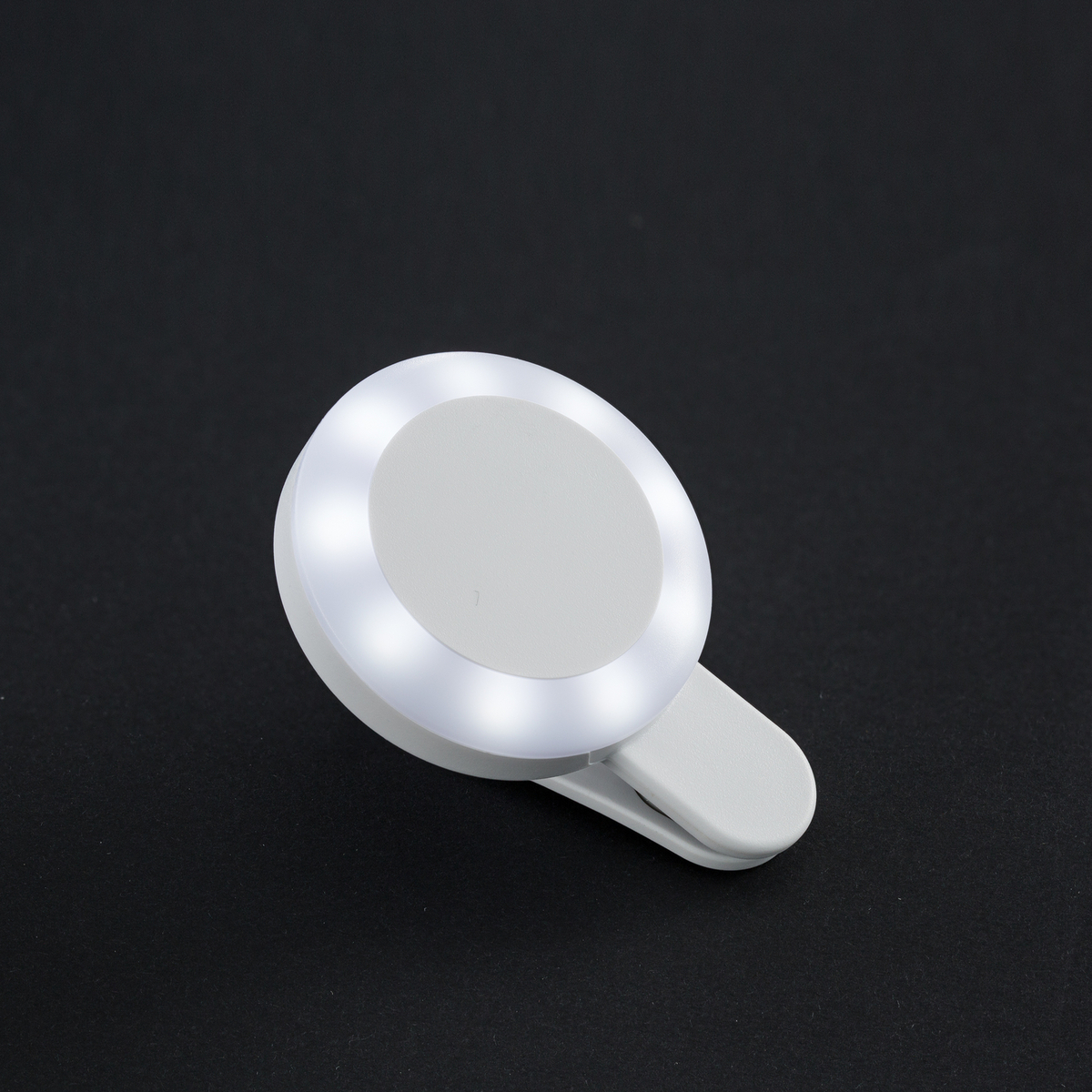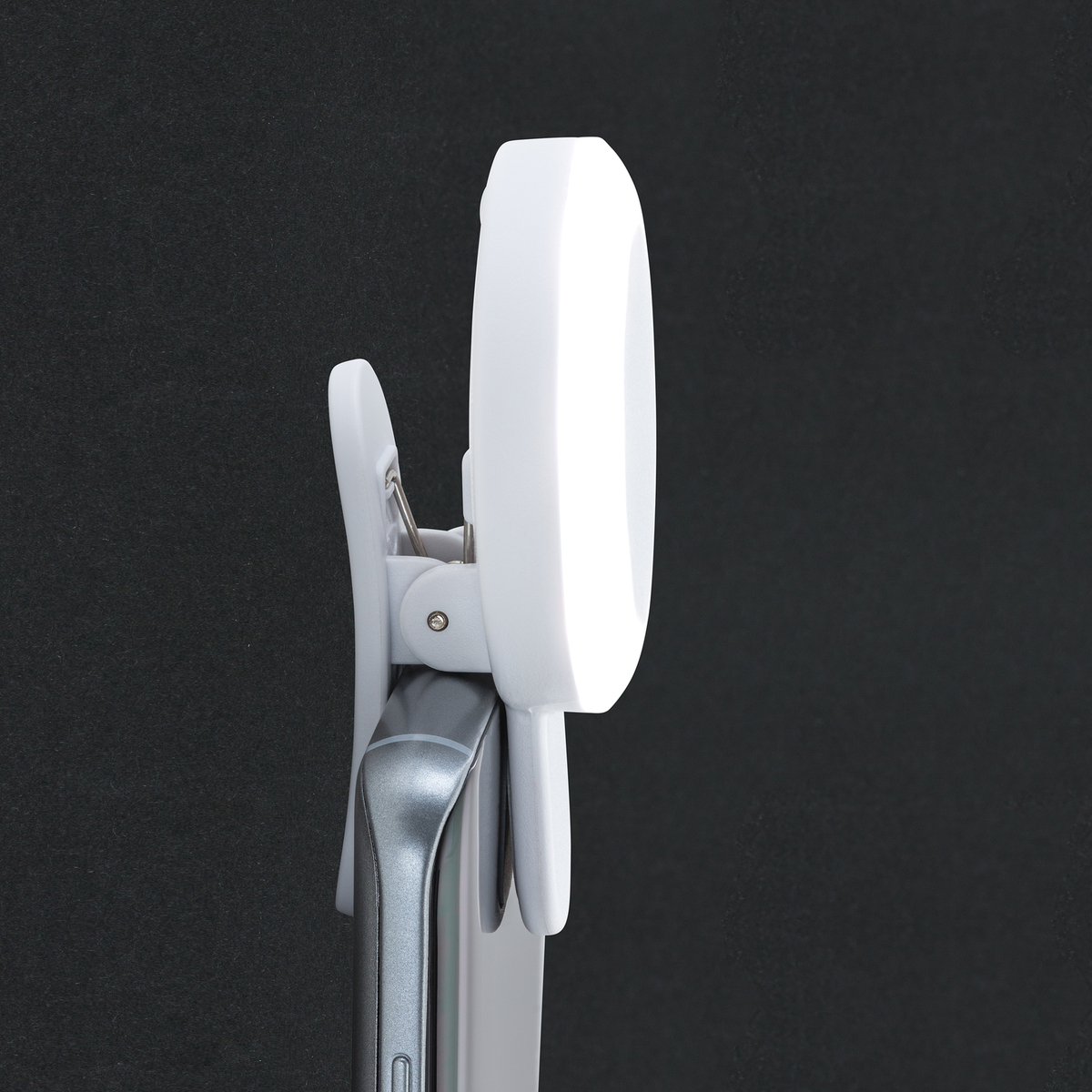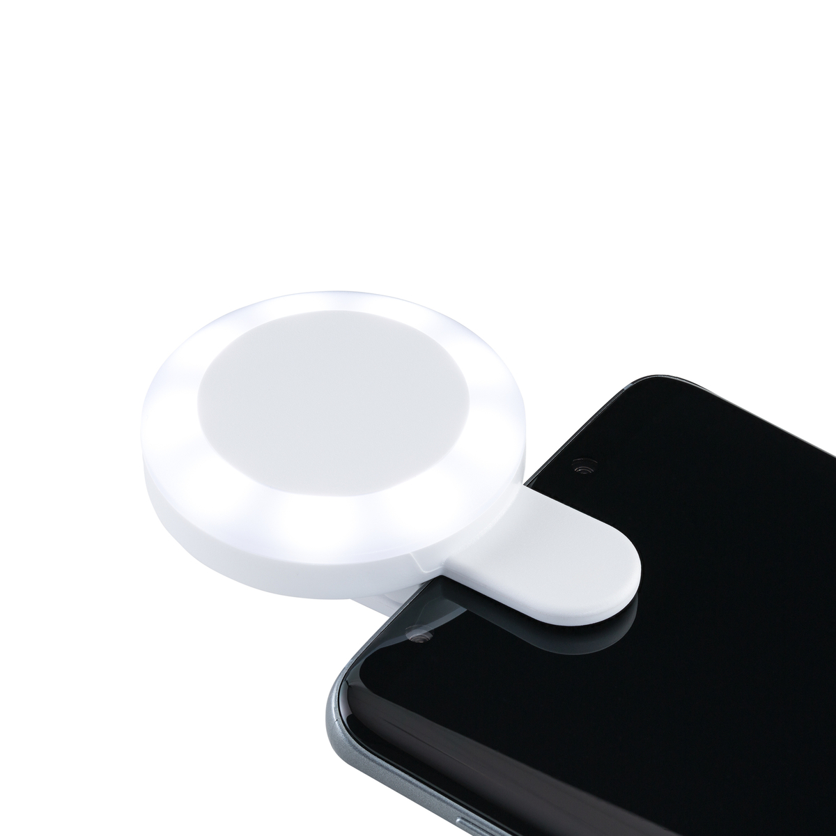 Nehmen Sie optimale Fotos auch bei schlechter Beleuchtung auf. Das in drei Stufen dimmbare Ringlicht, kann einfach an Ihr Smartphone oder Tablet geklemmt werden. Die Klemmflächen sind zum Schutz Ihrer Geräte mit einer weichen Gummierung versehen. Über mehrfaches Drücken des Einschalters dimmen sie die LEDs des Ringlichtes. Wiederaufladbar über beiliegendes USB-Kabel. Veredelbar mit Tampon- oder vollflächigem UV-Druck auf der Vorderseite zwischen dem Lichtring.