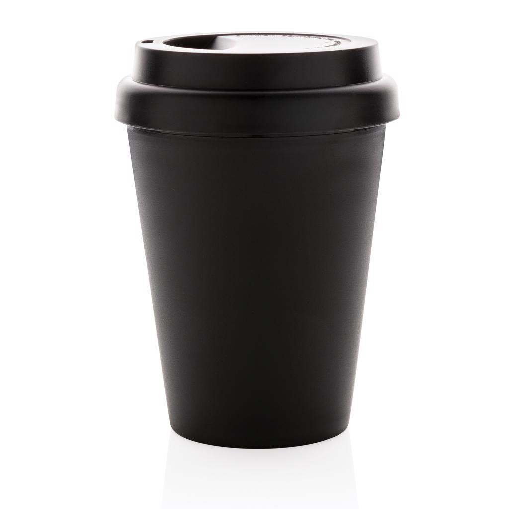 Das Ende der Einwegbecher! Nutzen Sie diesen wiederverwendbaren doppelwandigen Kaffeebecher und leisten so Ihren Beitrag zum Umweltschutz. Langlebig und leicht, aus 100% recycelbarem PP und bis zu 100 Grad Celsius Food-Safe getestet. Mit aufgeschraubtem Deckel. Passt perfekt unter fast alle gängigen Kaffeemaschinen. Nur Handwäsche. Inhalt: 300ml