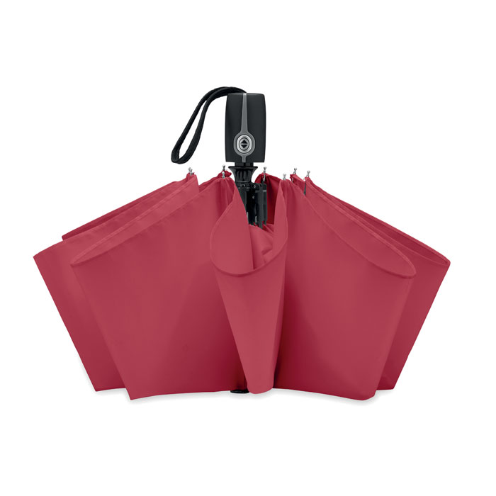 21'' Regenschirm aus 190T Polyester Pongee. Windbeständig. Gestell aus verzinktem Stahl. Schienen aus schwarzem Fiberglas, Spitzen aus verchromtem Metall. Schwarz gummierter Griff mit Doming. 3fach faltbar. Passende Schirmhülle. Automatische Öffnung und Schließung.