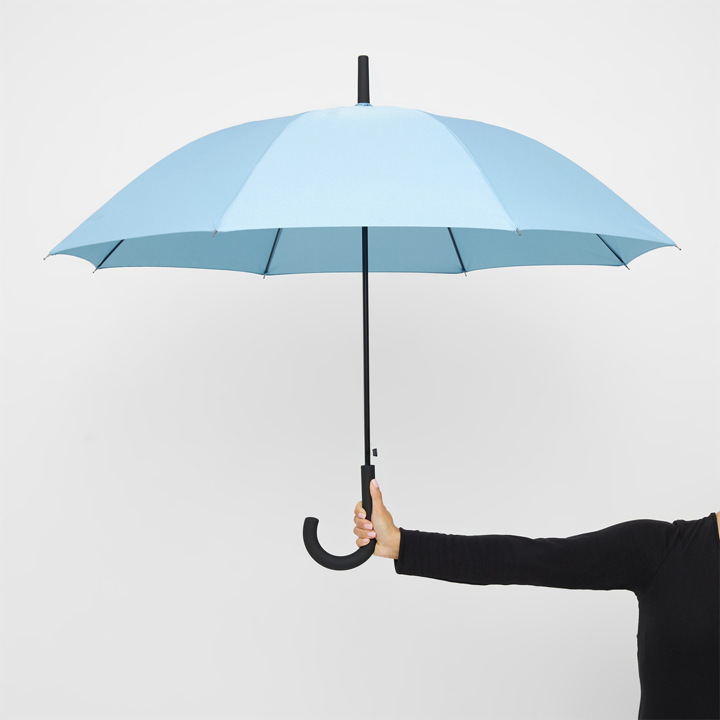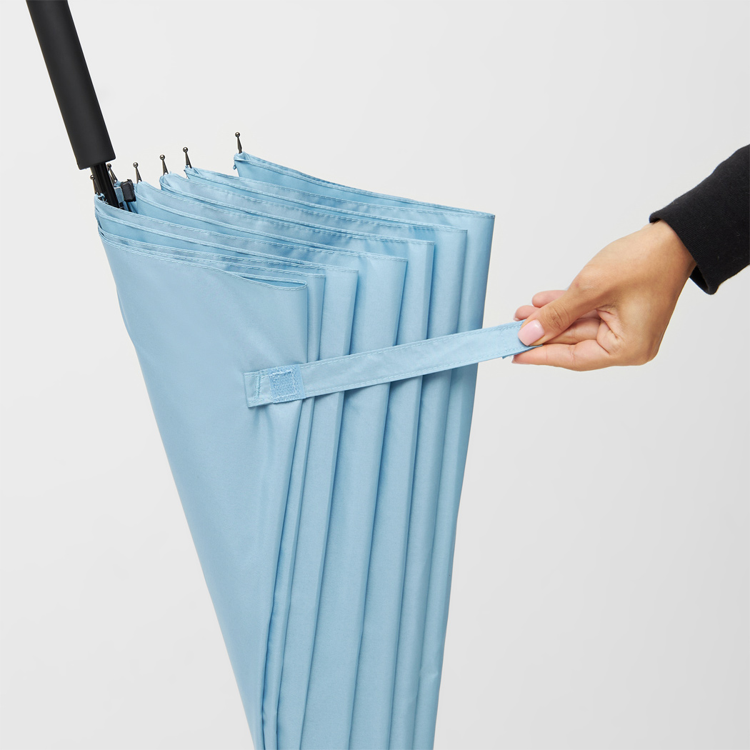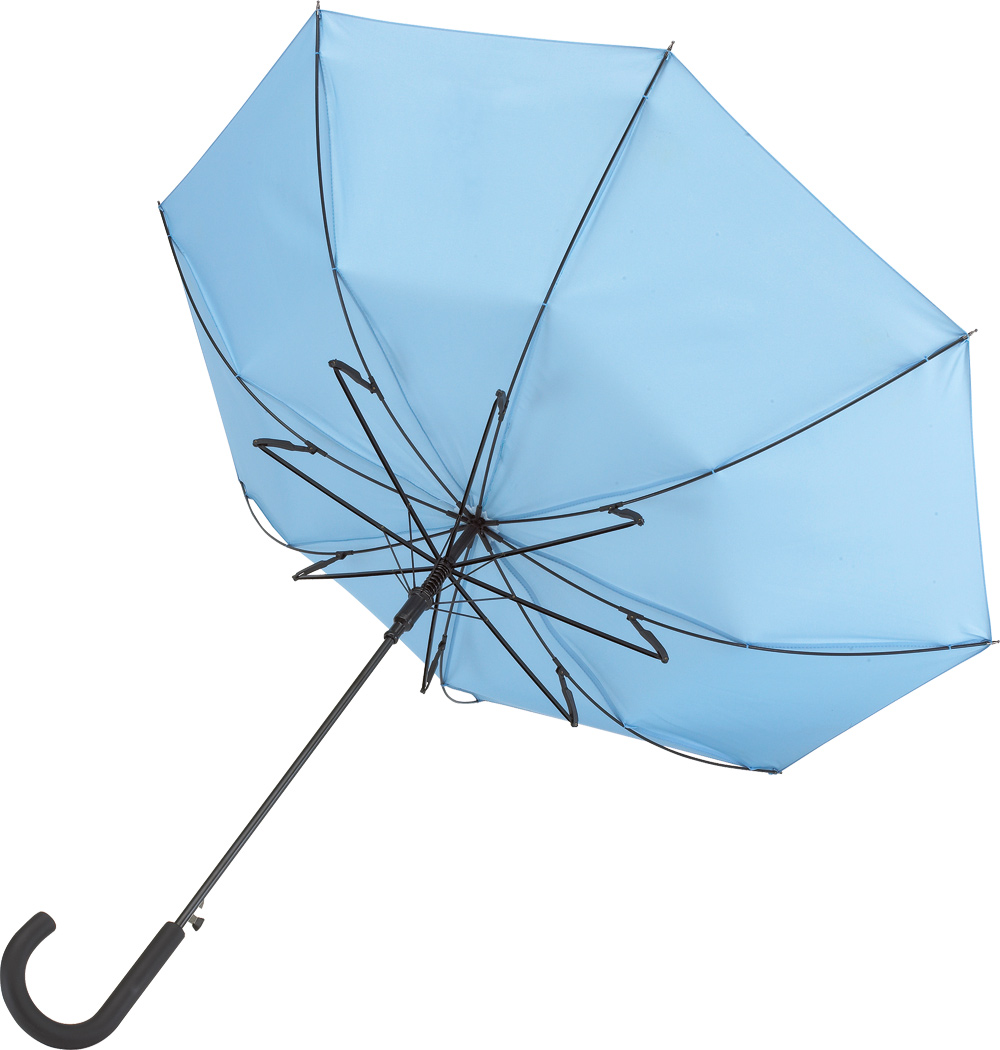 Automatischer Windproof-Stockschirm WIND: Metallstock, Fiberglasspeichen und Metalltips, gummierter Rundhakengriff, Polyester-Pongee-Bespannung, Schließband mit Klettverschluss