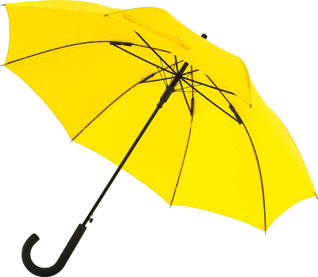 Automatischer Windproof-Stockschirm WIND: Metallstock, Fiberglasspeichen und Metalltips, gummierter Rundhakengriff, Polyester-Pongee-Bespannung, Schließband mit Klettverschluss