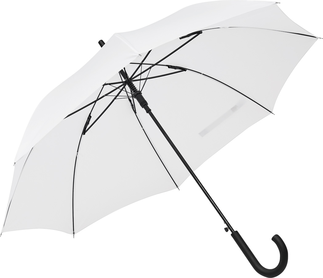Automatischer Windproof-Stockschirm WIND: Metallstock, Fiberglasspeichen und Metalltips, gummierter Rundhakengriff, Polyester-Pongee-Bespannung, Schließband mit Klettverschluss