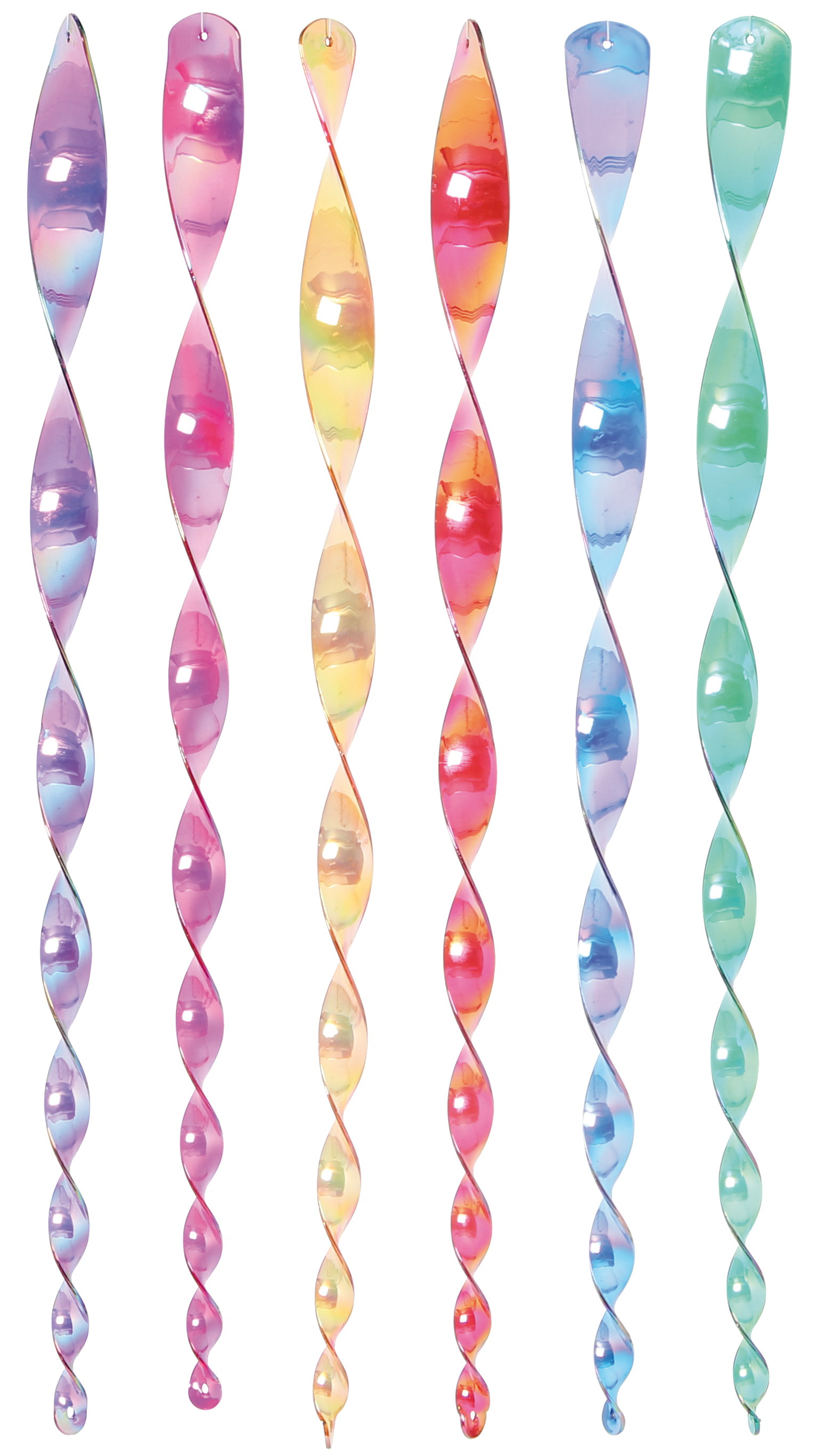 Extravaganter Blickfang mit irisierendem Farbenspiel. Ein leichter Windstoß genügt und die Spirale dreht sich scheinbar unendlich. 6 verschiedene Farben sortiert.