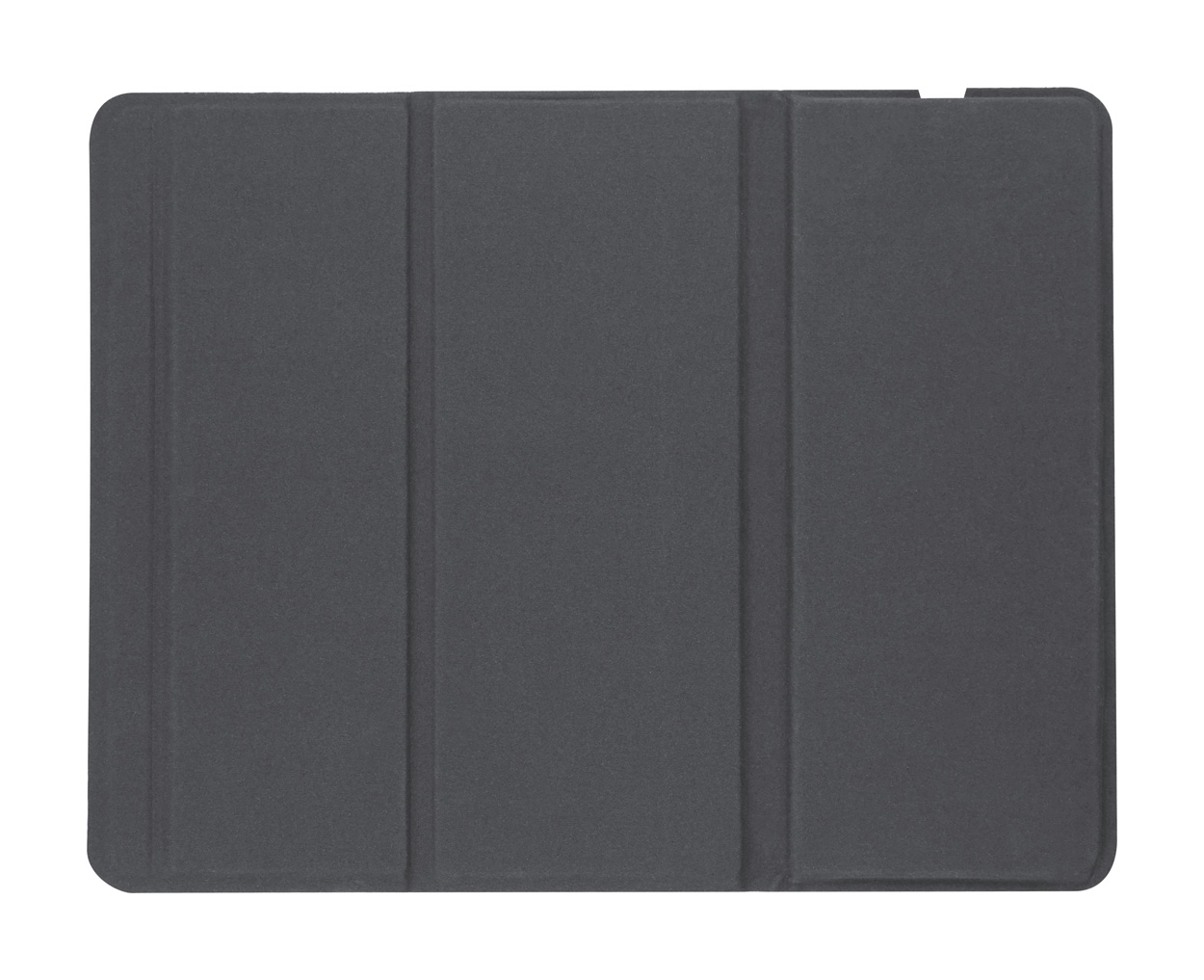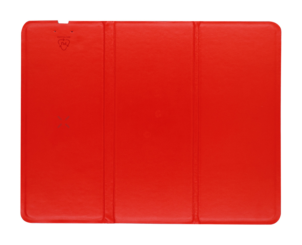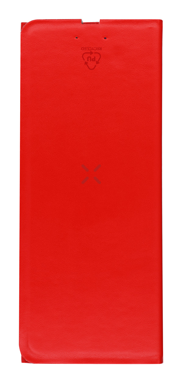Faltbares Mauspad aus recyceltem PU-Leder mit eingebautem Wireless-Charger (10 W) und Handyhalter. Mit rutschfester Samtunterseite. Inklusive USB-Ladekabel.