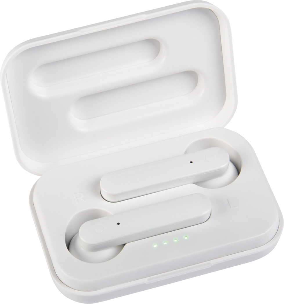 Wireless-In-Ear-Kopfhörer TWINS: mit Freisprechfunktion, kompatibel zu Bluetooth®, Reichweite ca. 10 m, Taste für Rufannahme/-beendigung und Track Vor- und Zurückfunktion, Stereo- oder Monobetrieb möglich, inkl. USB-Ladekabel mit Micro-USB Stecker (Länge: ca. 20 cm), mit grüner Ladekontroll-LED, Aufbewahrungsbox ist gleichzeitig Ladestation, Kapazität Kopfhörer: 30 mAh, Ladestation: 300 mAh, in Box