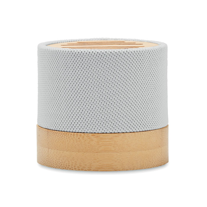 5.0 wireless Lautsprecher in RPET-Gehäuse mit Bambus. Mit LED- Lichtanzeige sowie SD-Kartenslot und AUX- / USB-Kabel. Freisprechfunktion. Inkl. 1 wiederaufladbarer Li-ION-Akku mit 300 mAh. Ausgangsdaten: 3 W, 3 Ohm und 5 V. Spielzeit ca. 3h. Bambus ist ein natürliches Produkt, es kann daher zu leichten Abweichungen in Farbe, Dekor und Maßen kommen.