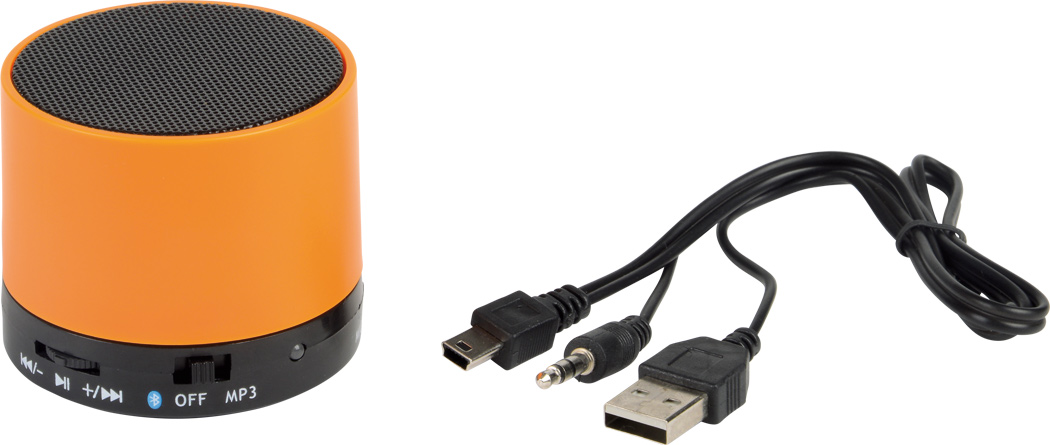 Wireless-Lautsprecher NEW LIBERTY: Musikleistung 3 Watt, Slot für Micro-SD-Karten, inkl. Aufladekabel (von USB auf Mini-USB- und 3,5 mm Line-In Anschluss), spielt MP3 ab, mit Freisprechfunktion, kompatibel zu Bluetooth, mit FM Radio-Funktion, integrierter aufladbarer Akku mit 450 mAh, Laufzeit: ca. 5 h, Aufladezeit: ca. 2 h, Reichweite ca. 10 m, gummierter Boden für sicheren Halt