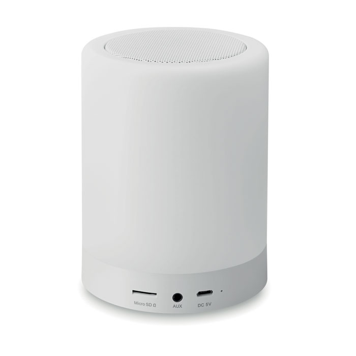 Wireless Lautsprecher mit wechselndem, farbigem Licht 1,6W. Farbe und Helligkeit auch per Touchfunktion einstellbar. Micro-SD-Karten Slot. Rufannahme-Funktion. Wieder aufladbare Li-Ion 2000 mAh. Ausgangsleistung: 3W.
