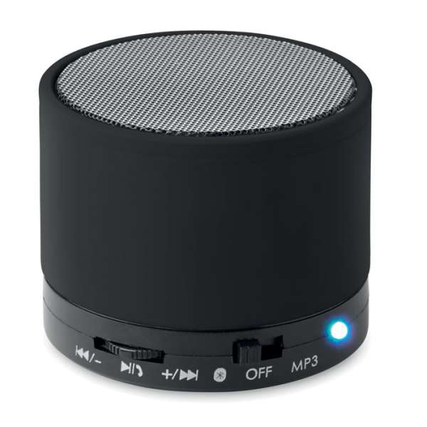 Runder 5.3 wireless Lautsprecher aus ABS in gummiertem Finish. Mit Rufannahme-Funktion. Inklusive SD-Card Port und einem AUX / USB Kabel. Inklusive 1 wieder aufladbare Lithium 450mAh Batterie. Ausgangsleistung: 3W, 3 Ohm und 5V.
