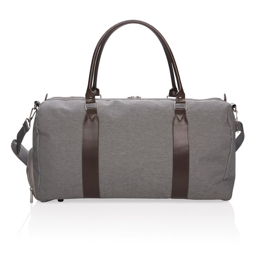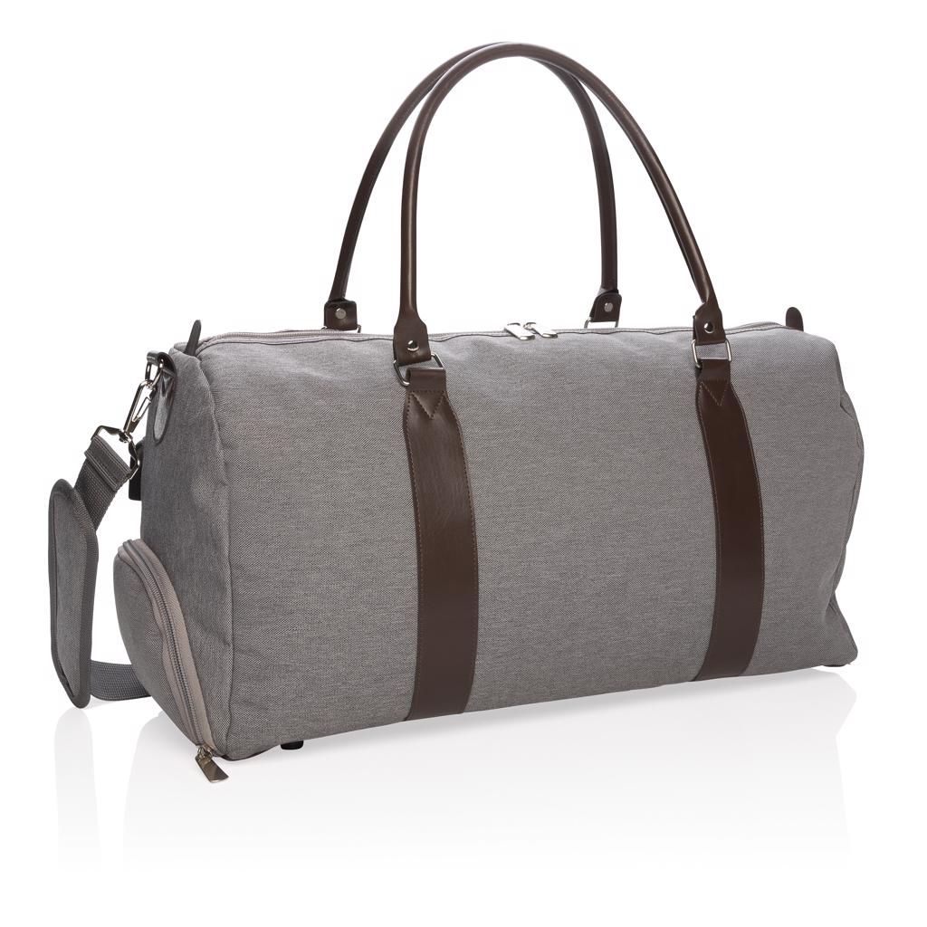 Moderne und minimalistische Wochenendtasche aus 600D Polyester mit PU Tragegriffen und bequemem Schultergurt. Großes Hauptfach mit viel Stauraum für Ihre Wochenendausrüstung oder Sportkleidung. Verbinden Sie Ihre Powerbank ganz einfach mit dem integrierten USB A Port und laden Sie Ihr Telefon oder Tablet - "on the go"! Zudem verfügt die Tasche über eine praktische Eingriffstasche an der Seite. PVC-frei.