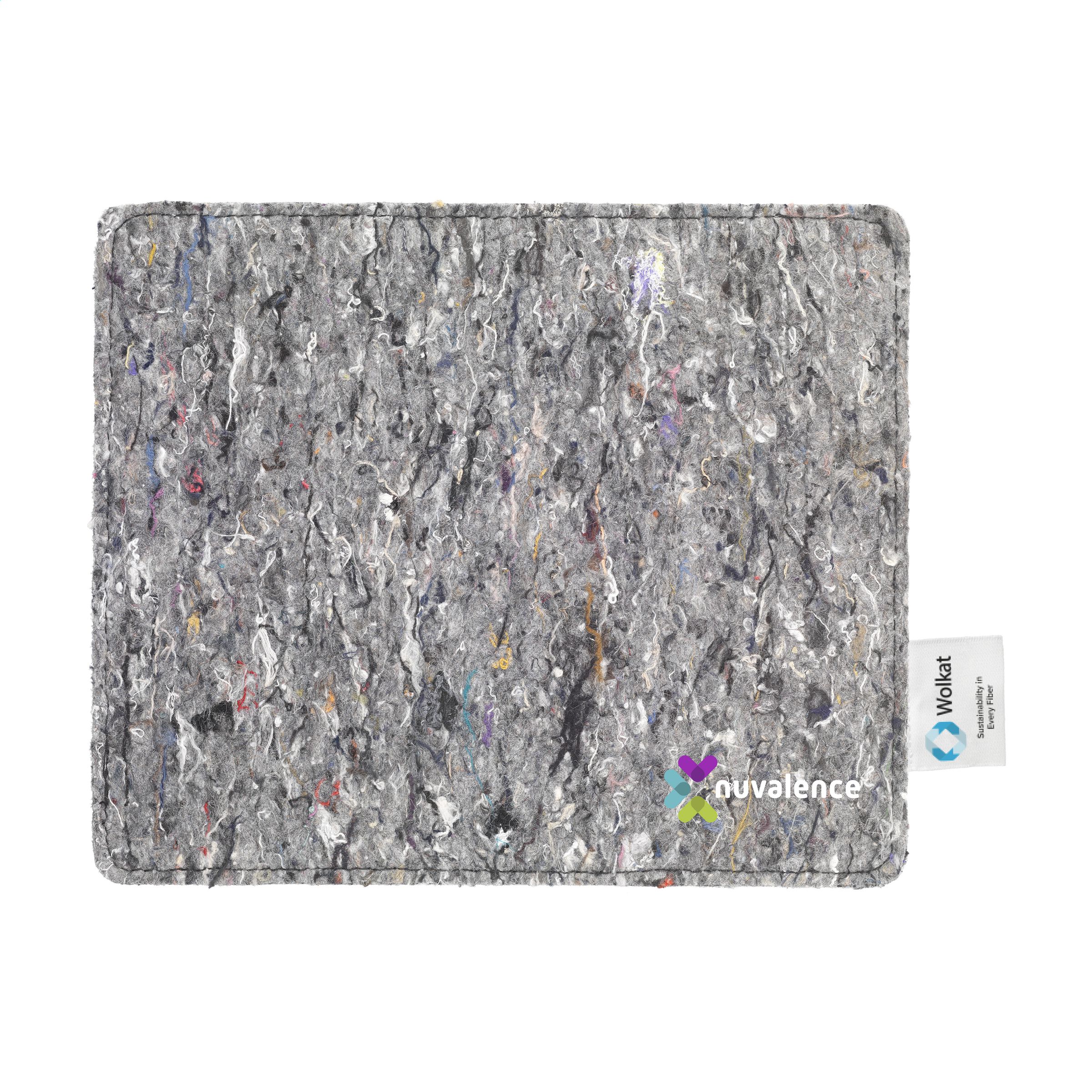 Mauspad aus Filz der niederländischen Marke Wolkat. Hergestellt aus alten, ausrangierten Kleidungsstücken, die niederländische Verbraucher abgegeben haben. Bei Wolkat wird der gesamte Prozess unter einem Dach gesteuert – vom Sammeln und Sortieren über das Recyceln bis hin zum Spinnen und Weben. Während des gesamten Textil-Recyclingprozesses werden weder Wasser noch Farbstoffe oder Chemikalien verwendet. Wolkat zerkleinert und zerfasert die Textilien zu reinen Fasern, die dann an die eigene Spinnerei übergeben werden. In der Spinnerei in Marokko werden Garne unterschiedlicher Stärke und Qualität gesponnen. Daraus werden Produkte hergestellt, die zu 52% aus recycelten Textilien von Verbrauchern und zu 48% aus recyceltem PET bestehen, zum Beispiel dieses Mauspad aus Filz.
