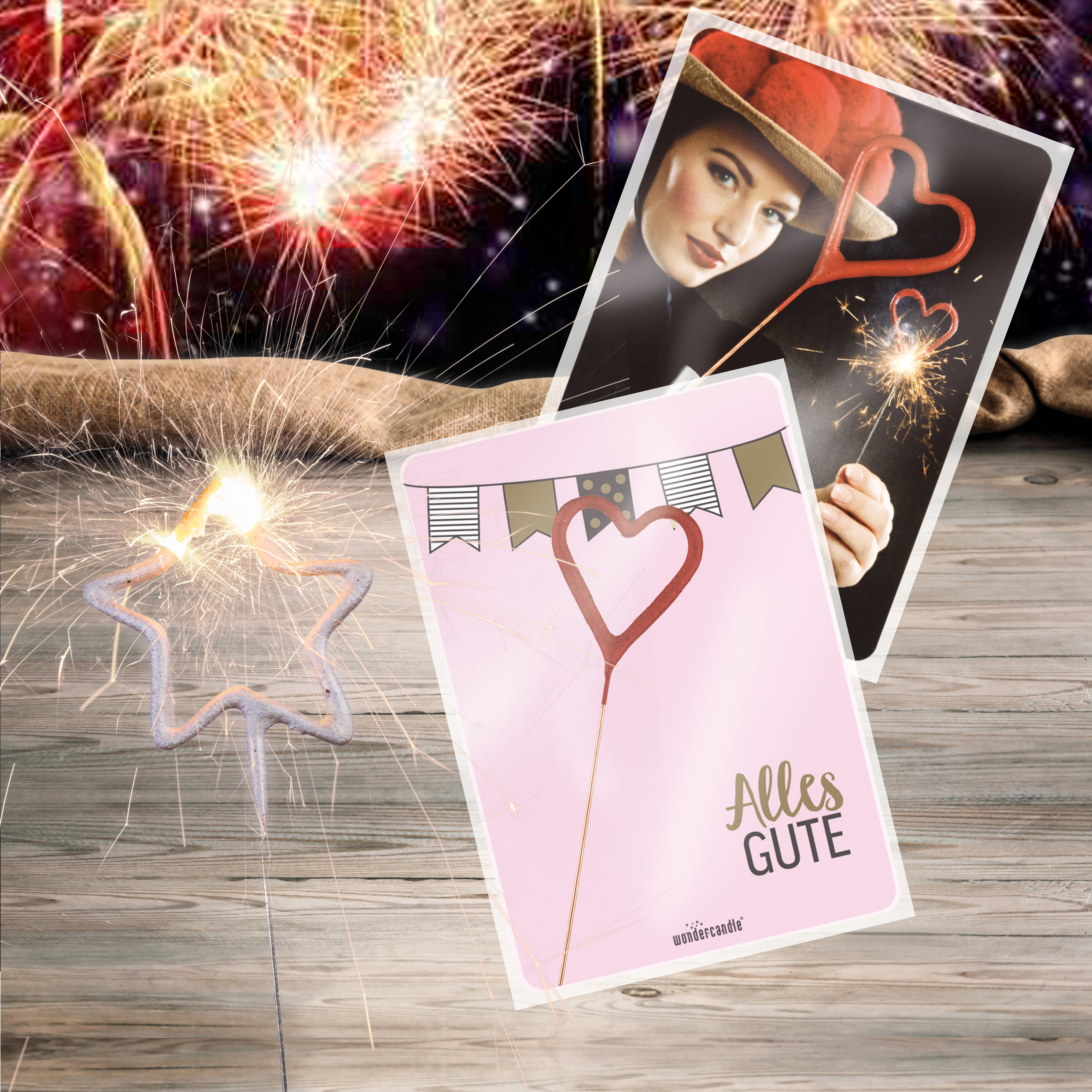 Feste muss man feiern, wie sie fallen. Am fetzigsten geht das mit stilvollen Wunderkerzen – egal ob als Gastgeschenk zur Einweihung, Freudenfeuer zum Jubiläum oder für andere Anlässe – eine Wunderkerze verleiht jedem Anlass einen besonderen Glanz. Die Wondercandle Mini sind in den Formen Herz (gold / silber / rot), Stern (gold / silber) und als Baum (gold / silber) lieferbar. Die bedruckte Karte bietet viel Platz für Ihre Werbebotschaft.