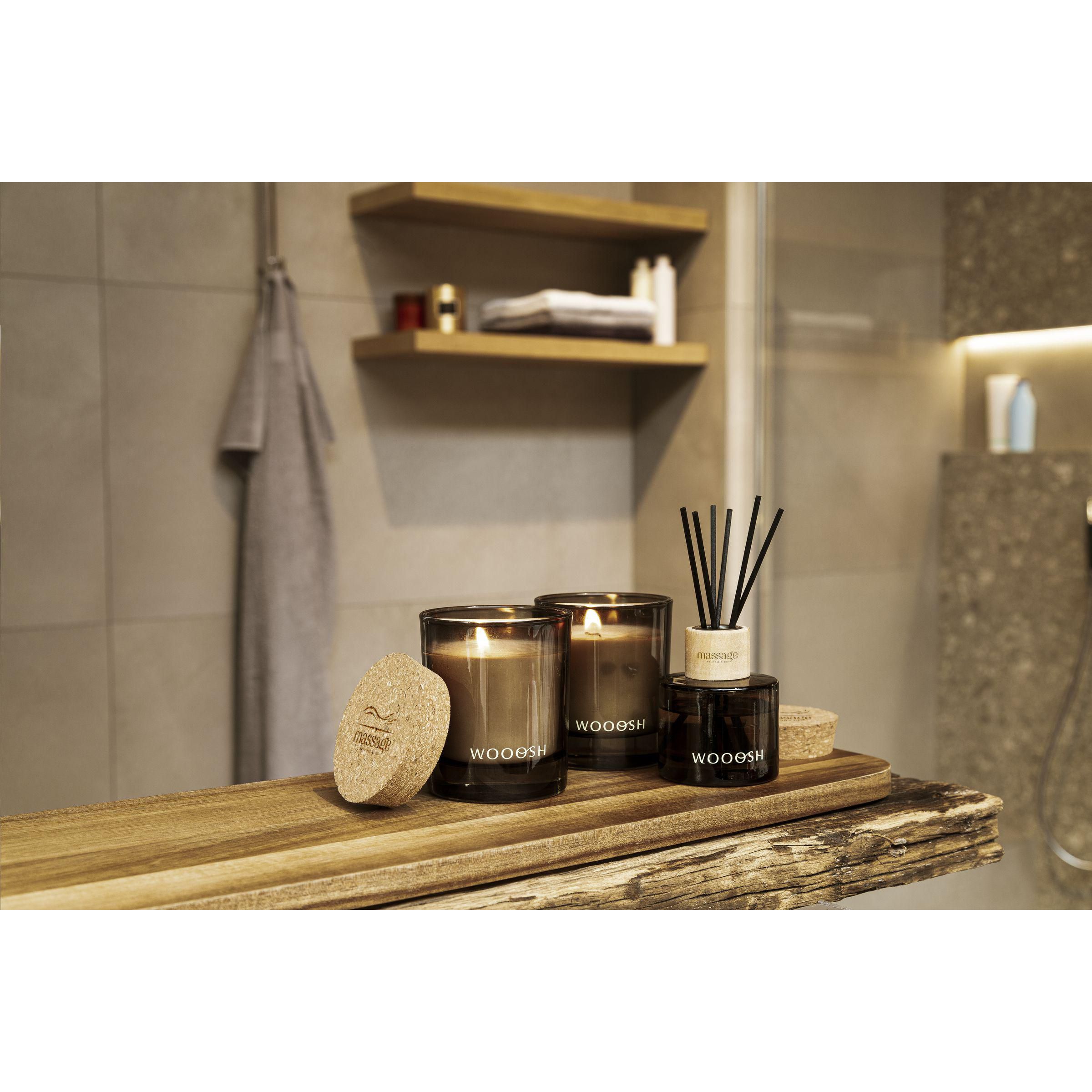 Dekorative Wooosh-Duftkerze, gegossen in einem wunderschönen polierten Glas mit Korkdeckel. Diese Kerze verströmt sofort einen angenehmen Duft und schafft ein entspanntes Ambiente. Die Duftkerze wird aus Wachs mit einem Anteil von 5% Sojawachs und einem Zusatz von 5% Duftöl hergestellt. Sobald Sie die Kerze anzünden, verspüren Sie ein sommerliches Ambiente: die Wärme der Sonne und die Frische des Schattens. Der fruchtige Duft von Feigen ist süß und ein wenig holzig. Diese luxuriöse Duftkerze passt in jede Umgebung und hat eine Brenndauer von 32 Stunden. Wenn Sie die Kerze zum ersten Mal anzünden, lassen Sie die oberste Wachsschicht vollständig schmelzen. Dies gewährleistet ein gleichmäßiges Abbrennen und das ultimative Dufterlebnis. Das perfekte Geschenk für jede Gelegenheit.
