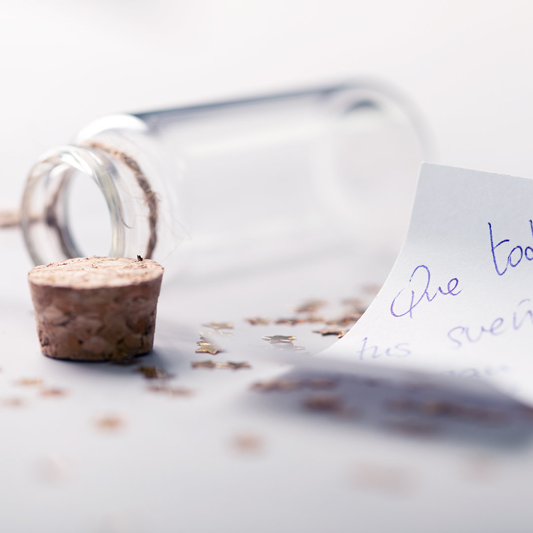 Kleine Flasche zum Aufbewahren der besten Wünsche für die kommende Weihnachtszeit. Inklusive Papierflicken und Glasflasche. Mit Deckel und Aufhängeband, präsentiert in einer weißen Einzelbox.
