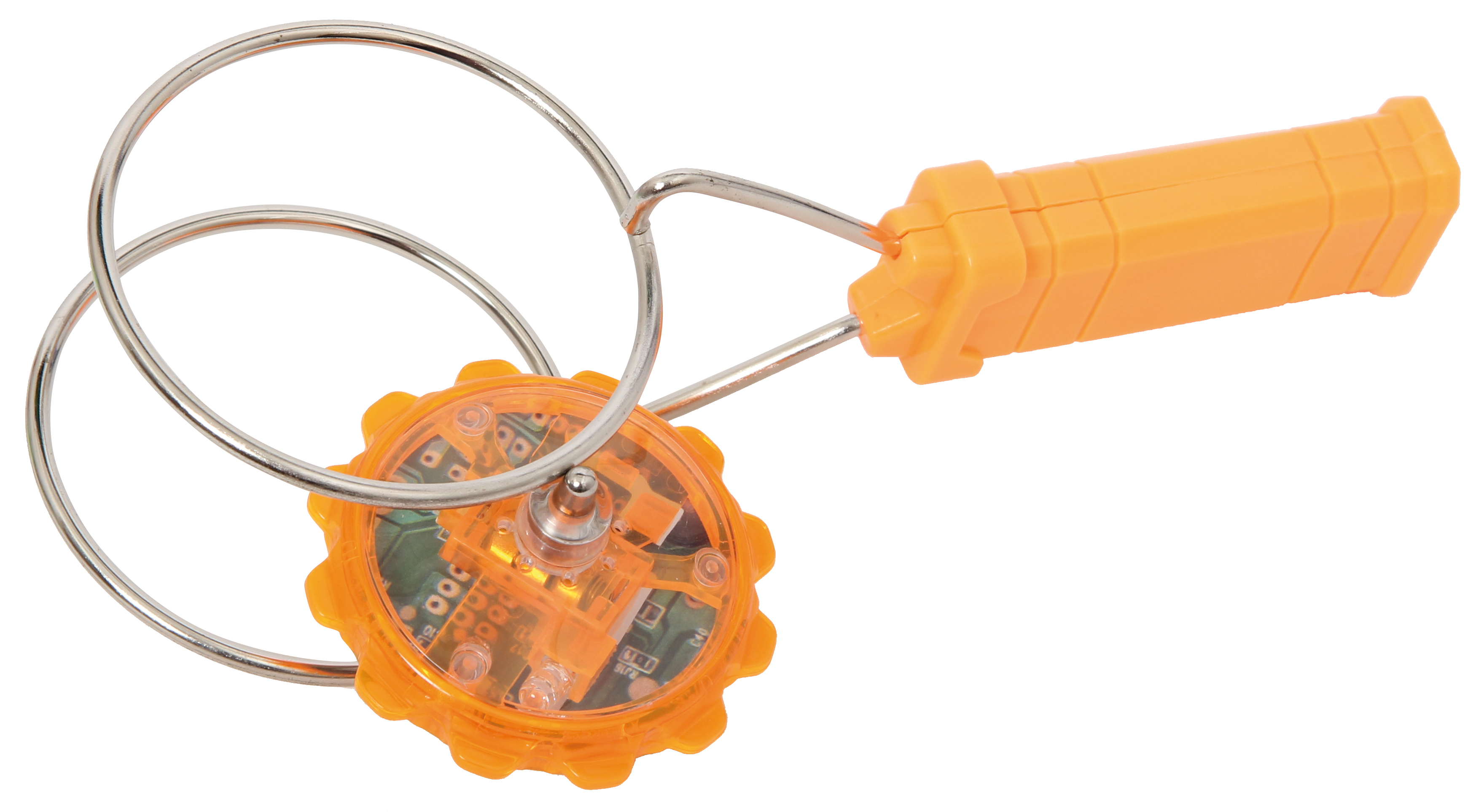 Der Kreisel wird außen auf die Metallschienen aufgesetzt, durch kreisende Bewegungen wird der Kreisel in Schwung gebracht und die LEDs beginnen zu leuchten. Schleudert man ihn nun waagrecht auf den Boden, kreiselt er weiter und kann auch wieder mit dem Handteil aufgenommen werden. Verschiedene Farben erhältlich: rot, orange, blau oder grün. (Hinweise zur Batterieentsorgung liegen der (Hinweise zur Batterieentsorgung liegen der Warensendung bei, oder vorab abzurufen, unter: Warensendung bei, oder vorab abzurufen, unter: http://1111ideen. de / content/25-Batterie-Hinweis)