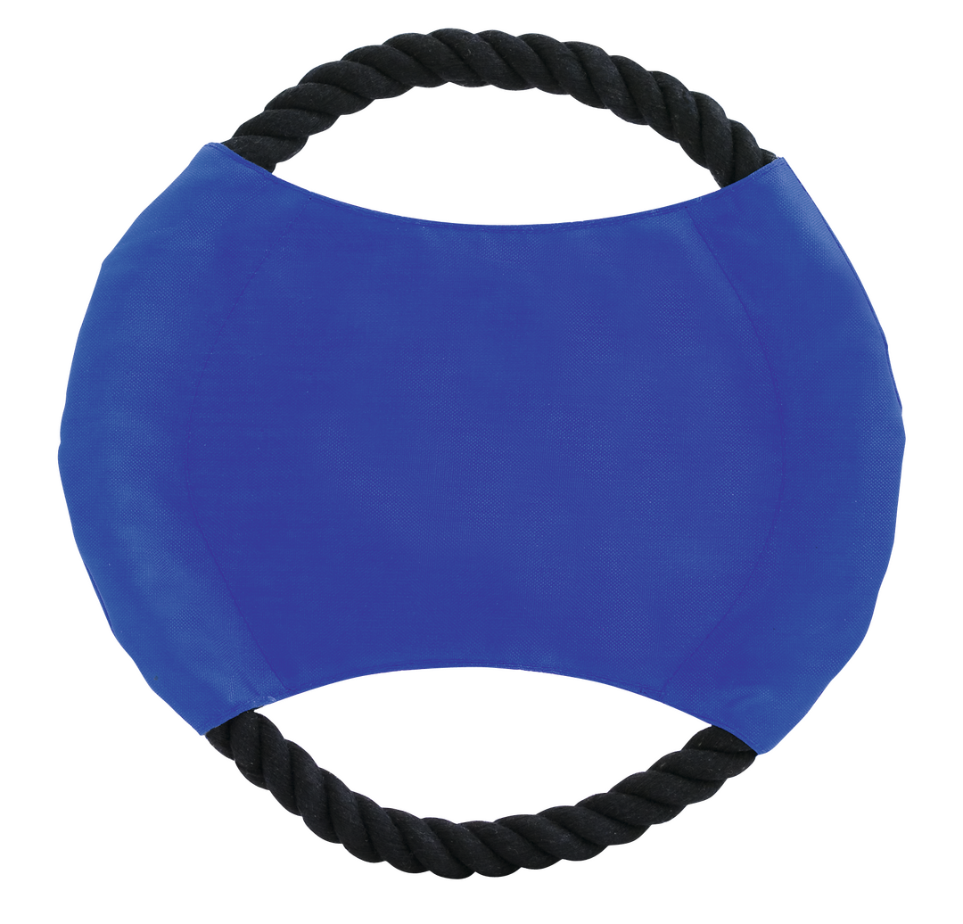 Wurfscheibe für Haustiere mit robuster Kordel sowie Mittelteil aus Baumwolle - in lebendigen Farben.