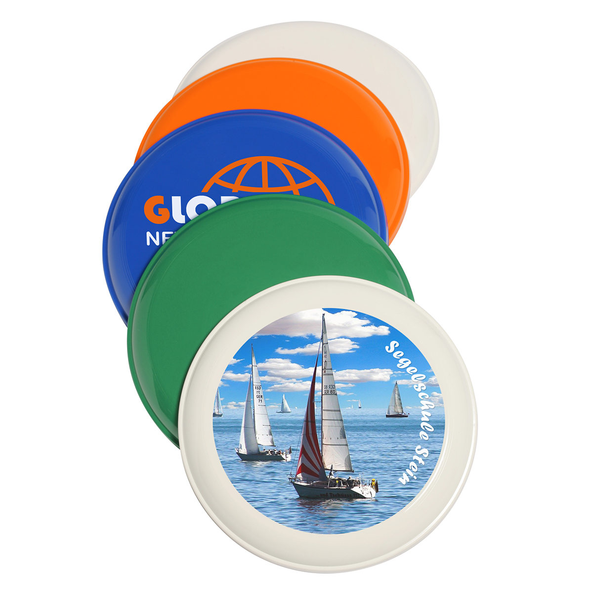 Wurfscheibe "Jupiter" mit besten Flugeigenschaften. Stapelbar und somit platzsparend für Messe- / Werbeaktionen einzusetzen.