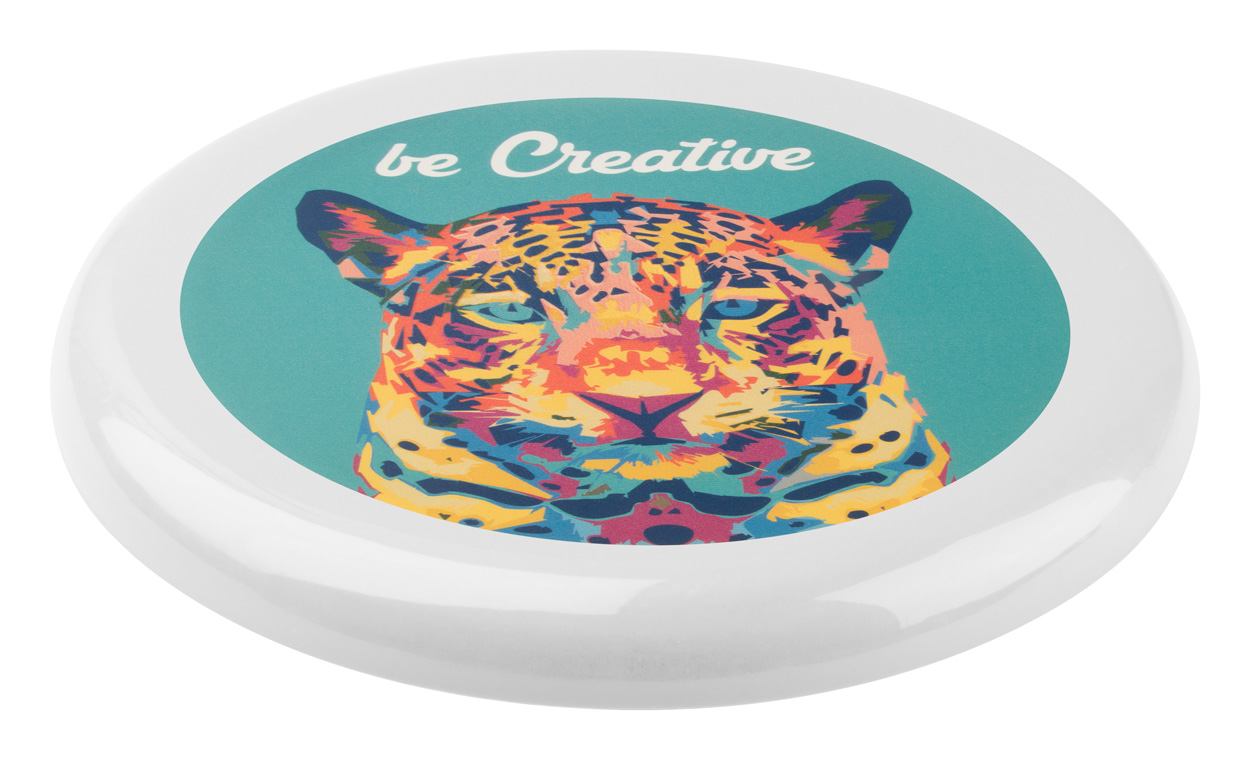Wurfscheibe aus Kunststoff mit flacher Oberfläche.