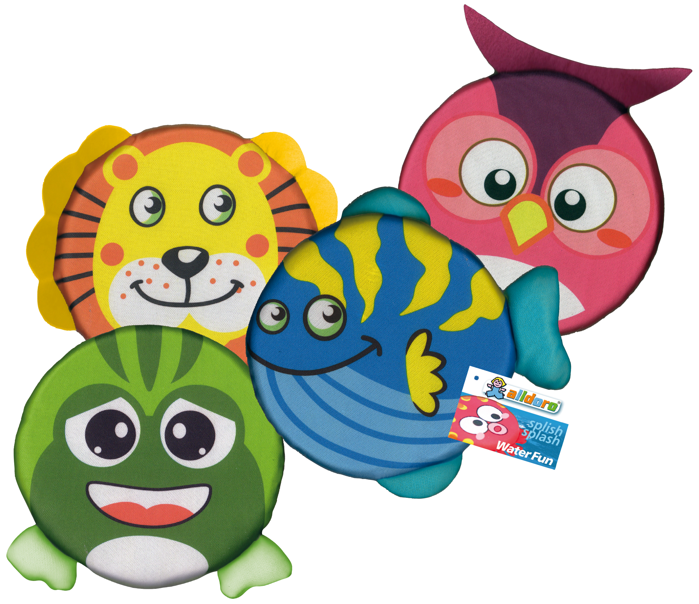 Softe Spaßmacher für drinnen und draußen! Das Set beinhaltet eine weiche Wurfscheibe (Durchmesser ca 20cm) und einen Stoffball (Durchmesser ca 7,5cm). Vier verschiedene Designs sortiert: Frosch, Fisch, Eule oder Löwe.
