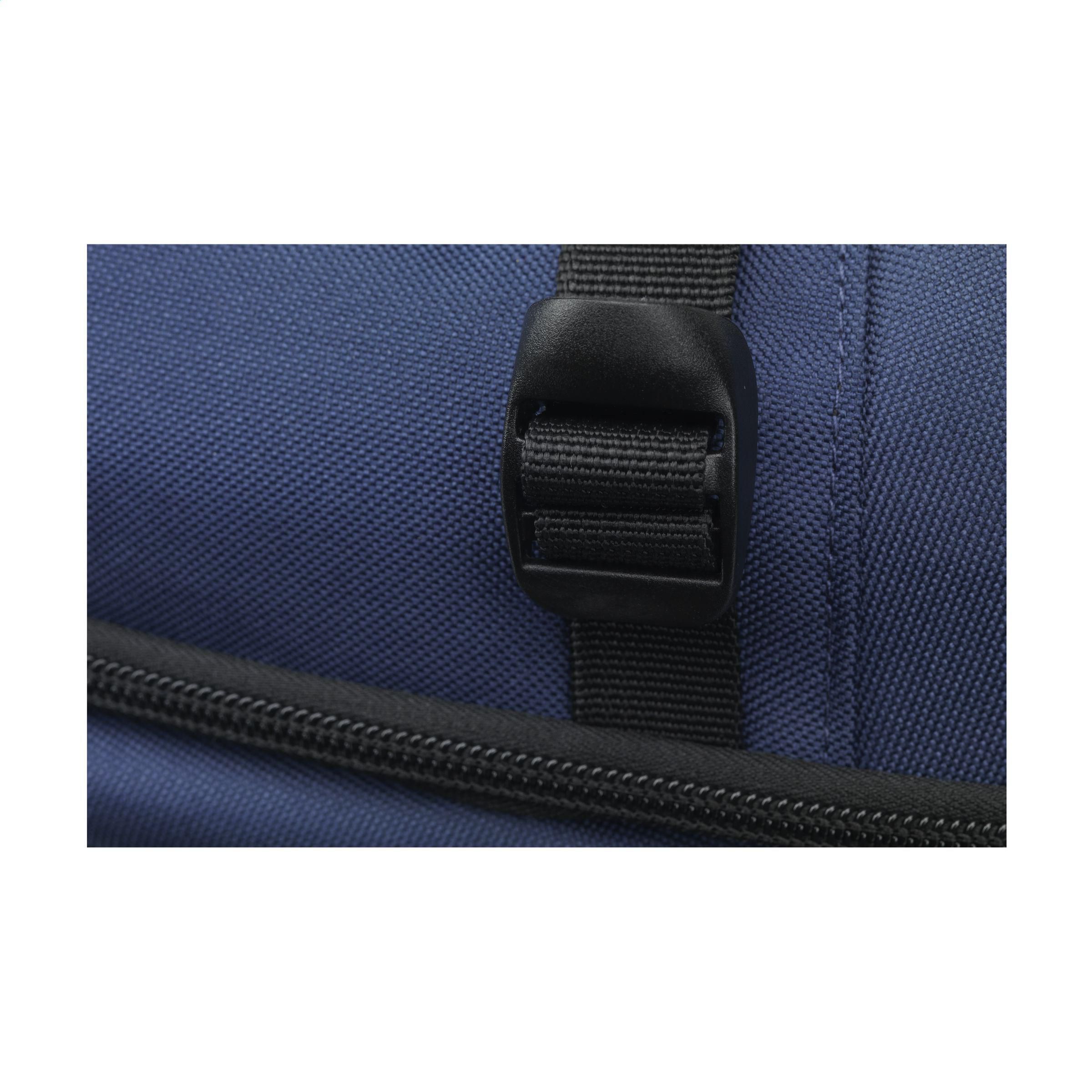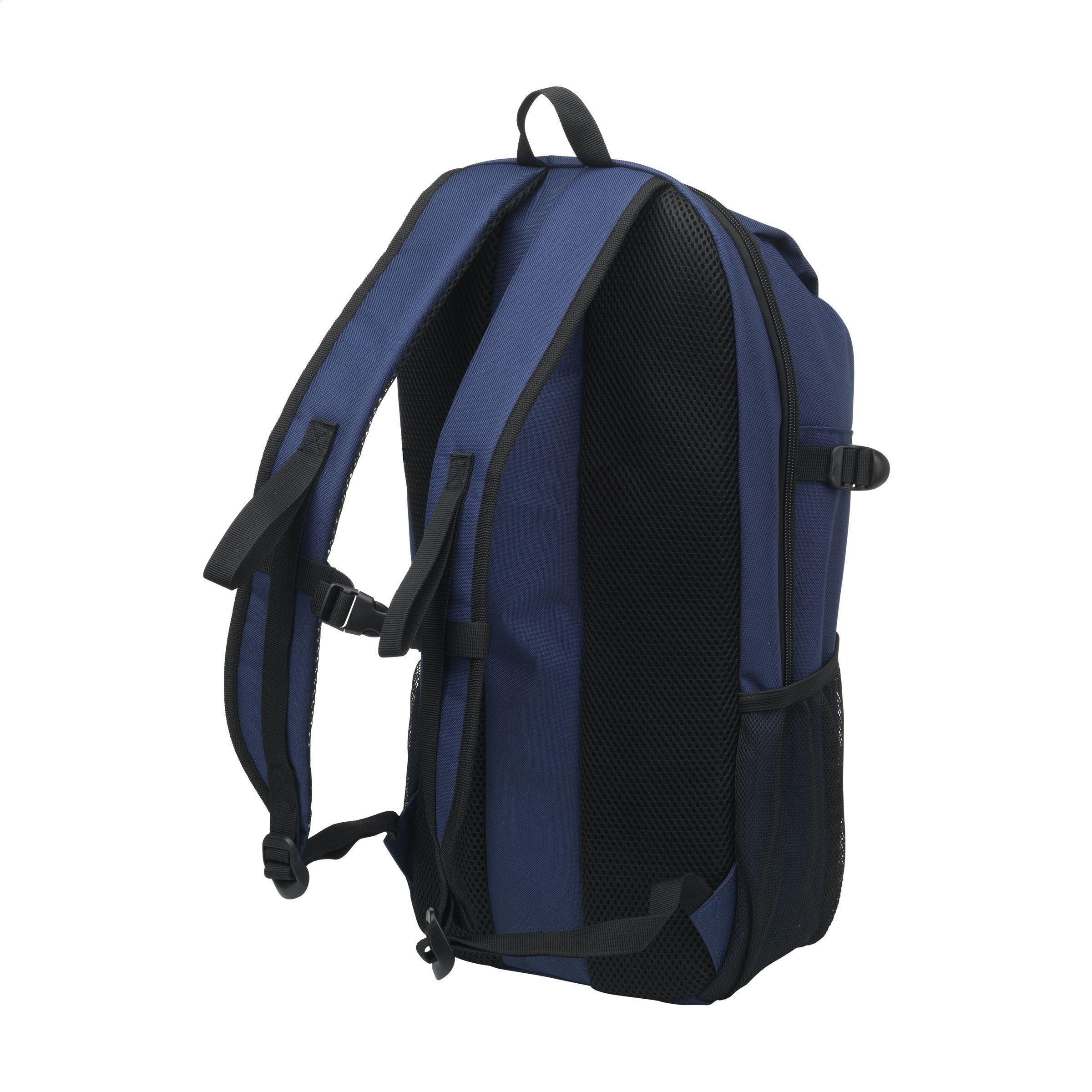 Rucksack aus robustem RPET-Polyester. Ein schlankes Design mit einem großzügigen Fach, in dem ein Laptop bis zu 15,6 Zoll sicher untergebracht werden kann. Mit extra Reißverschlusstasche auf der Vorderseite und einer Netztasche auf beiden Seiten. Die verstellbaren Schultergurte und das Rückenteil sind mit Netzstoff gefüttert und für zusätzlichen Tragekomfort mit Schaumstoff ausgestattet. Die verstellbaren Schultergurte haben zusätzliche Schlaufen und einen Riemen, um sie beim Tragen an ihrem Platz zu halten. Mit robusten Reißverschlüssen, vollständig gefüttert und sauber verarbeitet. Ein kompakter Rucksack mit überraschend viel Platz. GRS-zertifiziert. Gesamtes recyceltes Material: 92%. Fassungsvermögen ca. 12 Liter.