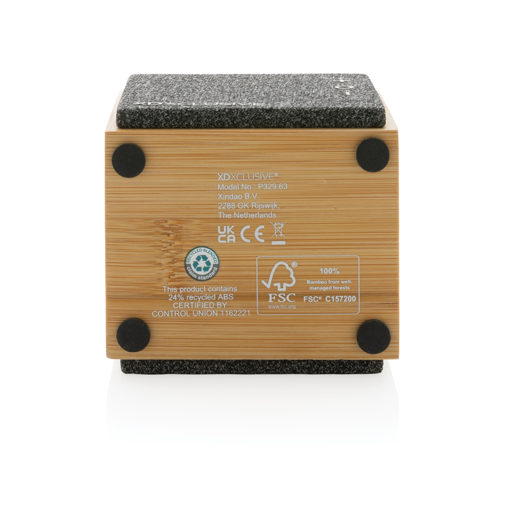 Luxuriöser 5W-Lautsprecher mit klarem Klang und starkem Bass. Das Gehäuse besteht aus 100% FSC-zertifiziertem Bambus. Die Kunststoffkomponenten bestehen aus RCS (Recycled Claim Standard) zertifiziert recyceltem ABS. Gesamter Recyclinganteil: 27% bezogen auf das Gesamtgewicht des Artikels. Die RCS-Zertifizierung gewährleistet eine vollständig zertifizierte Lieferkette der recycelten Materialien. Der Lautsprecher ist mit BT 5.1 ausgestattet, um einen klare und stabile Verbindung auf bis zu 10 Metern sowie einen geringen Stromverbrauch zu gewährleisten. Der 1.200 mAh-Akku ermöglicht eine Spielzeit von bis zu 6 Stunden und kann in bis zu 2 Stunden vollständig aufgeladen werden. Mit Annahmefunktion und Mikrofon um auch Telefonate führen zu können. Verpackt in FSC-Mix-Kraftkarton. Inklusive RCS-zertifiziertem Ladekabel aus recyceltem TPE.