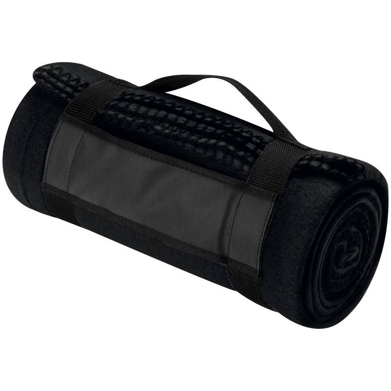 Flauschige Fleecedecke aus Polyester (Grammatur 170 g / m², Größe 180 x 120 cm) mit Trageband. Ihre Werbung drucken wir auf das Trageband. Stick auf der Decke auf Anfrage möglich.