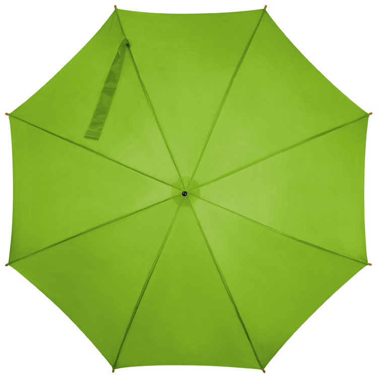 Der Klassiker, Automatikregenschirm mit 190T Polyesterbespannung, Echtholzschaft u. -griff sowie einem Metallgestänge mit Hochleistungsautomatikfeder. Ihre Werbung drucken wir auf ein Segment.