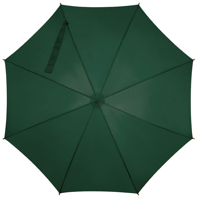 Der Klassiker, Automatikregenschirm mit 190T Polyesterbespannung, Echtholzschaft u. -griff sowie einem Metallgestänge mit Hochleistungsautomatikfeder. Ihre Werbung drucken wir auf ein Segment.