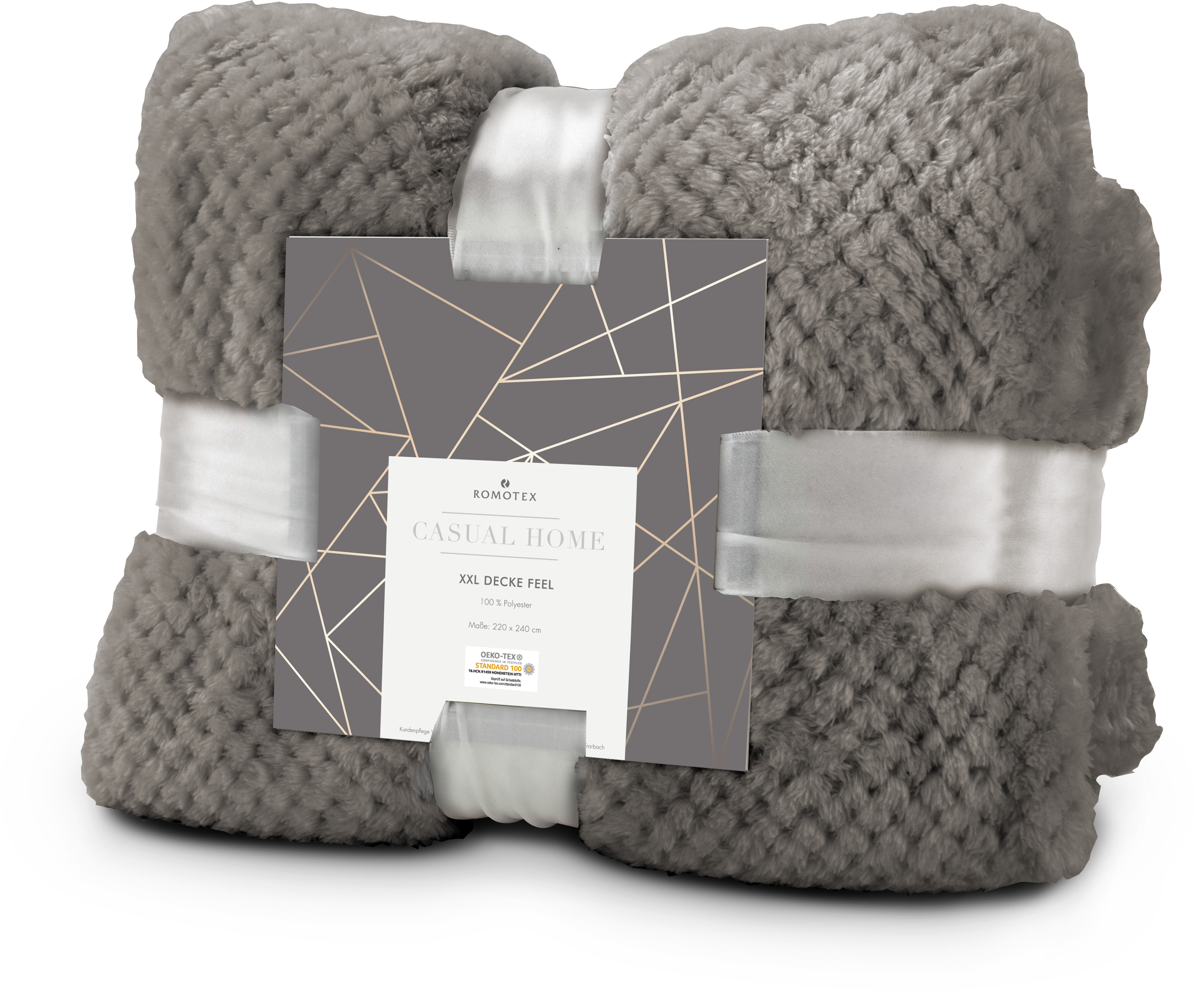 Kuschelige XXL-Decke "Feel” im Großformat - das moderne Waffelmuster macht die Decke zu einem echten Blickfang! Erhältlich in verschiedenen Farben, Jacquard-Flanell (100% Polyester), jede Decke ist einzeln mit Satinband und im Polybeutel verpackt. Qualität: 275 g / m², Maße: 220 x 240 cm (Zertifiziert nach STANDARD 100 von OEKO-TEX®)