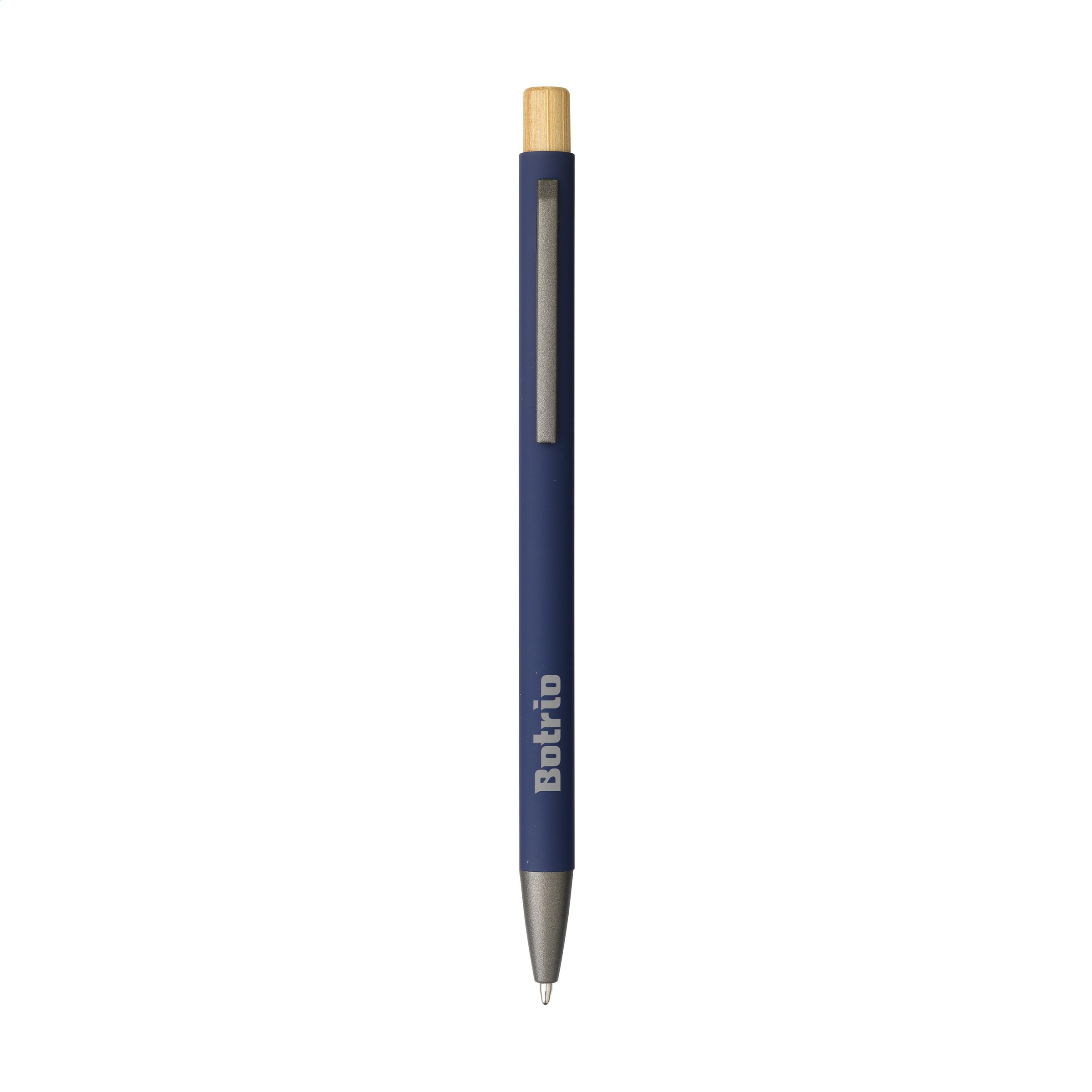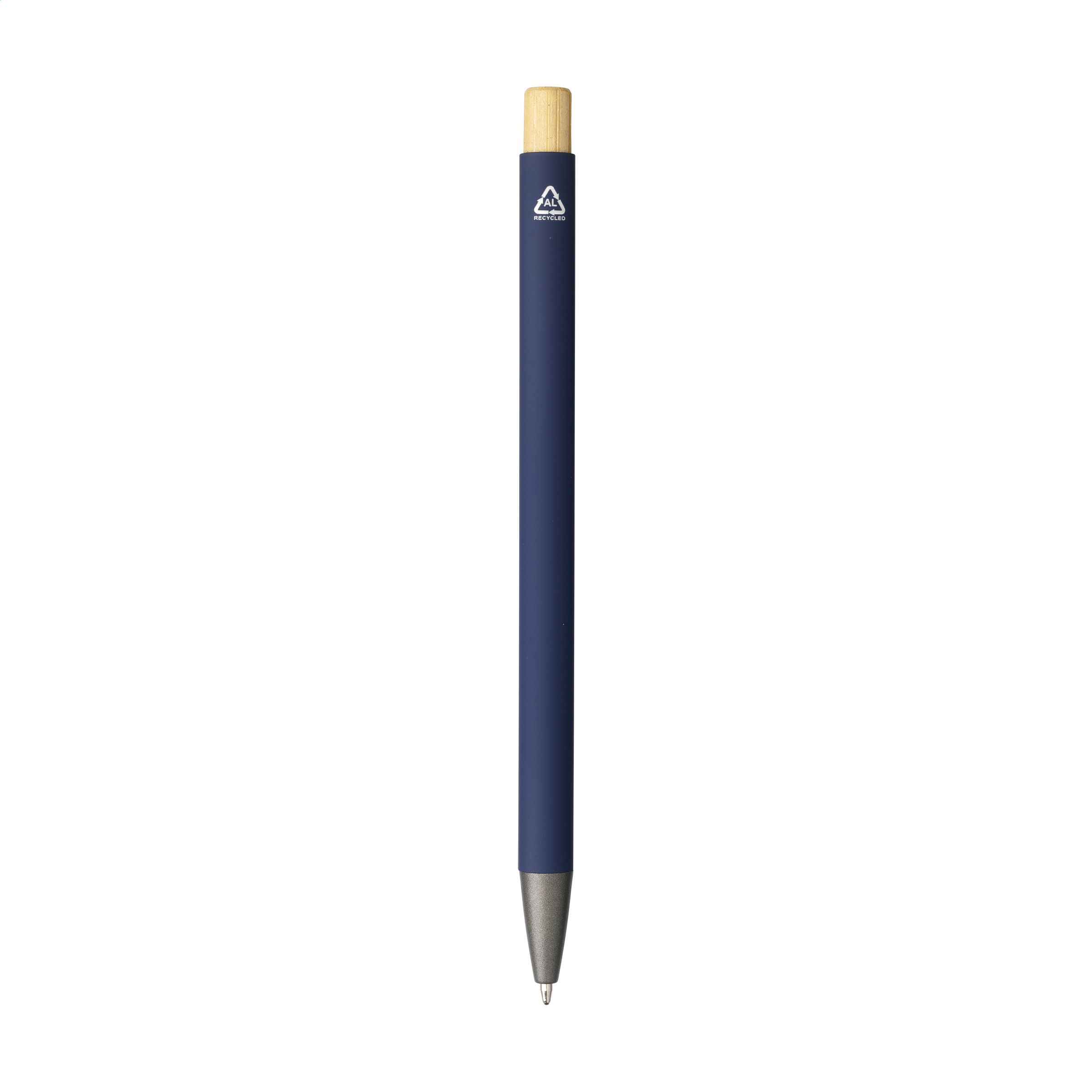 Beschreibung: WoW! Blauschreibender, schlanker Kugelschreiber mit einem Gehäuse aus 100% recyceltem Aluminium mit gummierter Oberfläche. Metallclip. Schlankes Design. Der Bambus-Druckknopf verleiht dem Stift eine natürlicher Akzent. GRS-zertifiziert. Durch die Verwendung von recyceltem Aluminium kommt eine geringere Menge an neuen Rohstoffen zum Einsatz. Das bedeutet weniger Energieverbrauch und weniger Wasserverbrauch.