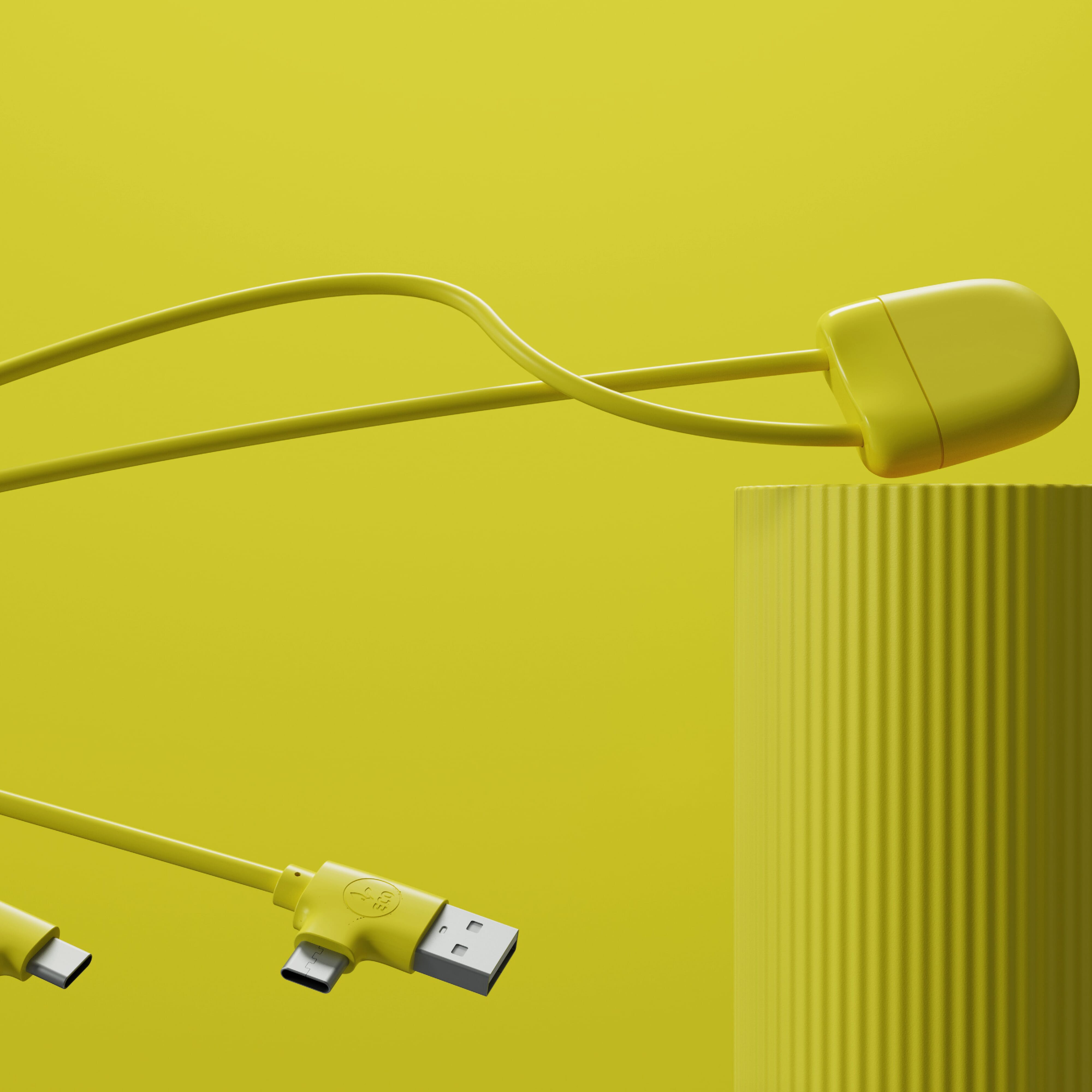 Das 27Watt ICE-C-Ladekabel ist unser neuestes Multiladekabel mit einem dualen USB- und USB-C-Eingang und einem dualen USB-C- und Lightning-Ausgang. Das Kabel hat eine Länge von zweimal 50 cm und unterstützt Datenübertragung und Car Play. Der Gesamtanteil an recyceltem Material beträgt 55 %, bezogen auf das Gewicht des Artikels. Das Kabel ist in einem nachhaltigen FSC-zertifizierten Papierumschlag verpackt.