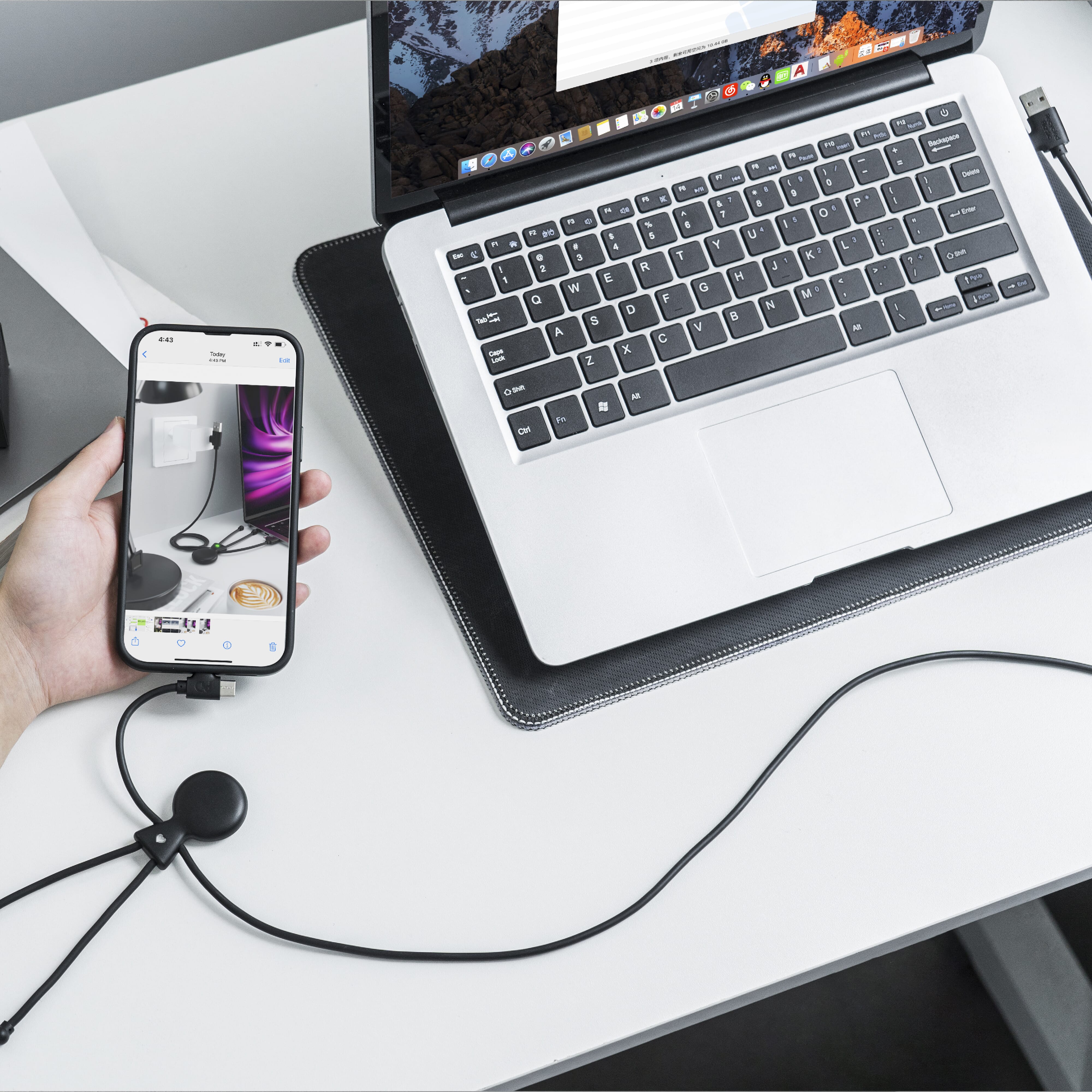 Mr. Bio Long PD ist ein ein Meter langes Multiladekabel mit einem dualen USB- und USB-C-Eingangsanschluss und einem dualen USB-C- und Lightning-Ausgangsanschluss. Es verfügt über eine Schnellladefunktion zum Aufladen aller Geräte, einschließlich Laptops, und bietet eine Daten- und Stromübertragung von bis zu 60 W. Mr. Bio Long ist aus umweltfreundlichem, recyceltem Kunststoff hergestellt. Der Gesamtanteil an recyceltem Material beträgt 53 %, bezogen auf das Gewicht des Artikels. Das Kabel ist in einem nachhaltigen, FSC-zertifizierten Papierumschlag verpackt. Xoopar-Produkte dürfen in Frankreich und Spanien nicht verkauft werden.