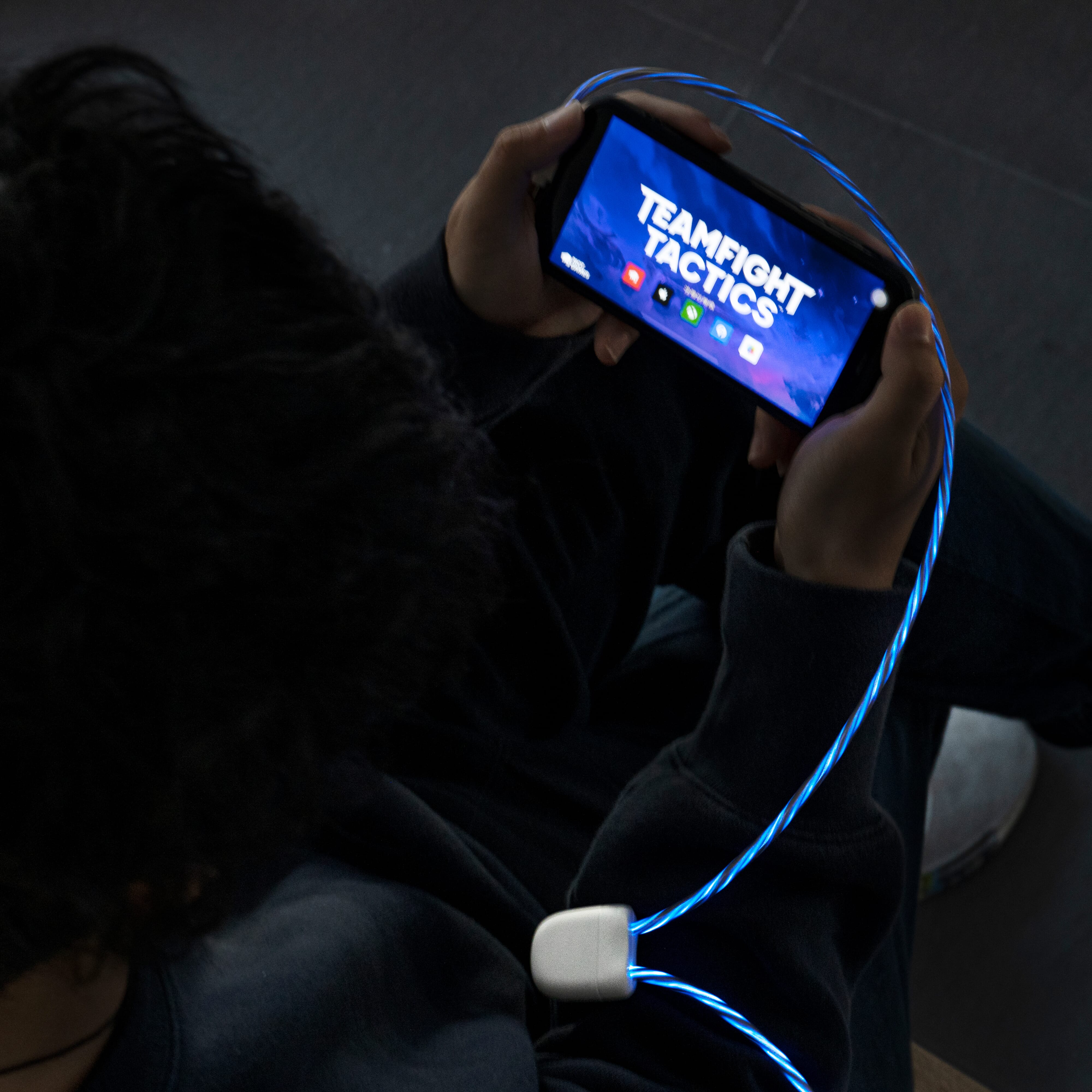 Die Xoopar Light up Ladekabel ist 2 x 50cm lang, perfekt für nahtloses Laden und CarPlay-Funktionalität. Dualer Ein- / Ausgang, bis zu 27W Schnellladen. LED-Geschwindigkeit zeigt die Ladezeit an. Aus recyceltem Kunststoff.
