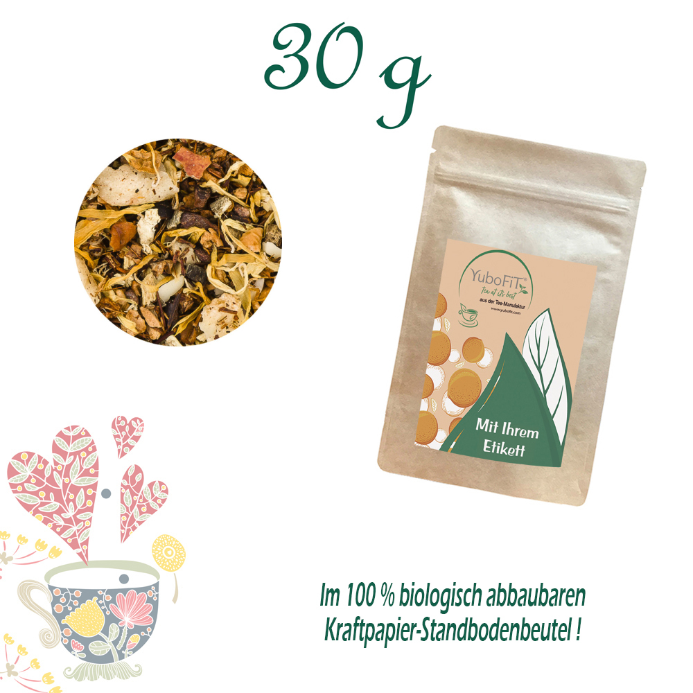 Apfel, Aroma, Bananenchips, Kakao, Karamellstücke, Ringelblume, Süßholzwurzel