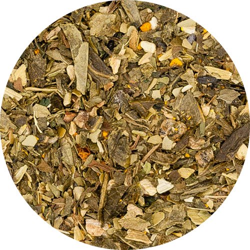 Grüner Tee Sencha* (47 %), Kardamomschoten*, Ingwer*, Mate* (10 %), Krauseminze*, Brennnesselblätter* (5 %), Guaranasamen* (3 %), Kurkuma* (2 %), Chili* (1,5 %), natürliches Limettenaroma(* Zutaten aus kontrolliert biologischem Anbau)
