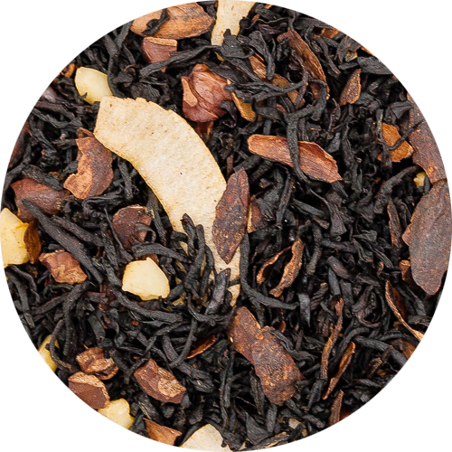 Schwarzer Tee*, Kakaoschalen* (10 %), Kakaobohnen* (10 %), geröstete Kokosnusschips*, Mandeln*, Aroma(* Zutaten aus kontrolliert biologischem Anbau)