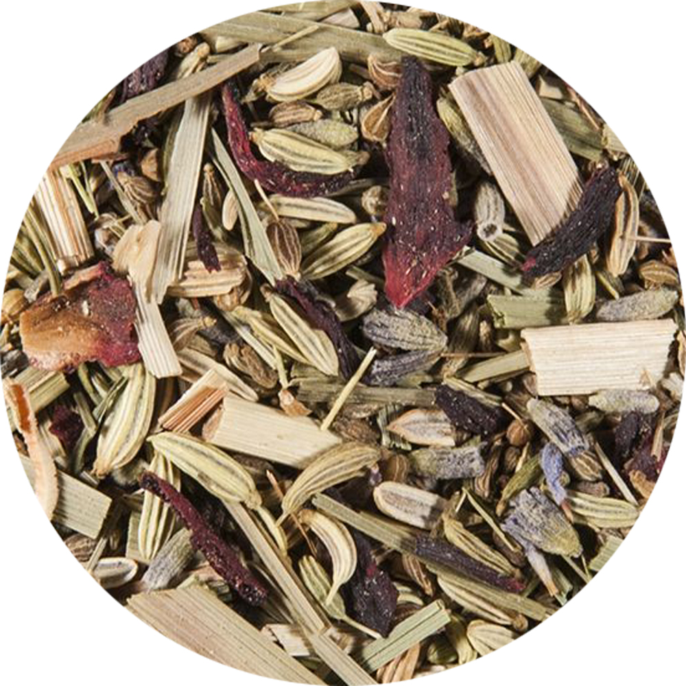 Fenchelsaat*, Anissaat*, Zitronengras*, Lavendelblüten*, Hibiskusblüten*, natürliches Aroma (* Zutaten aus kontrolliert biologischem Anbau)