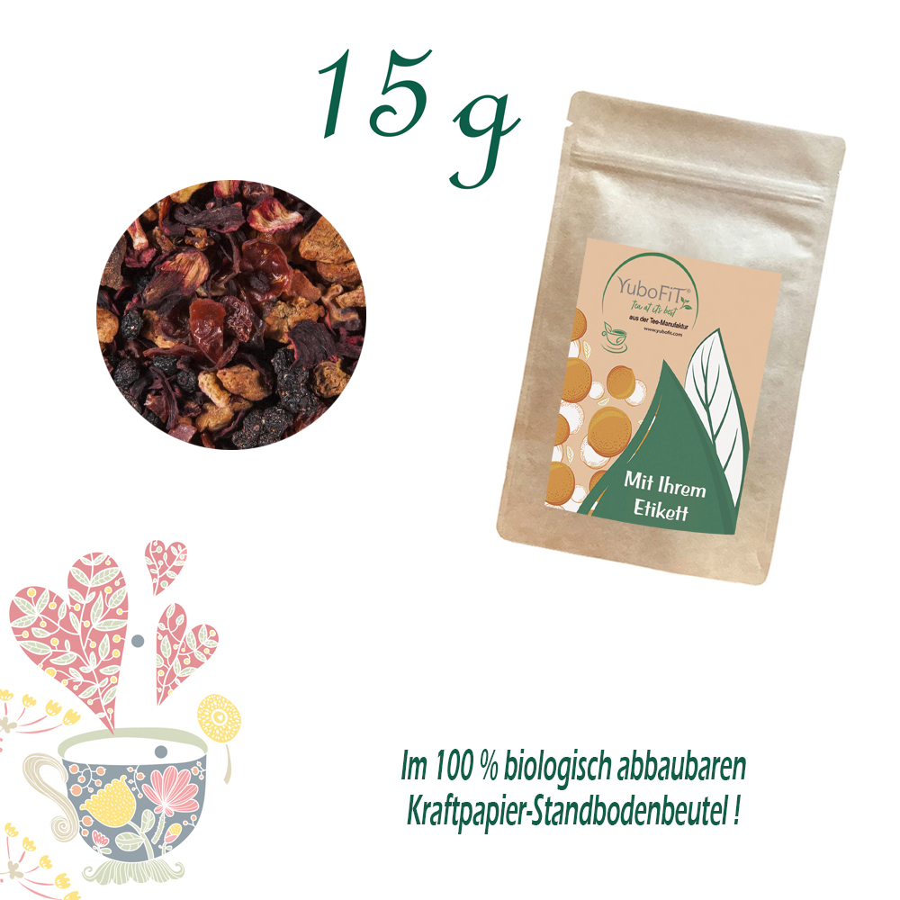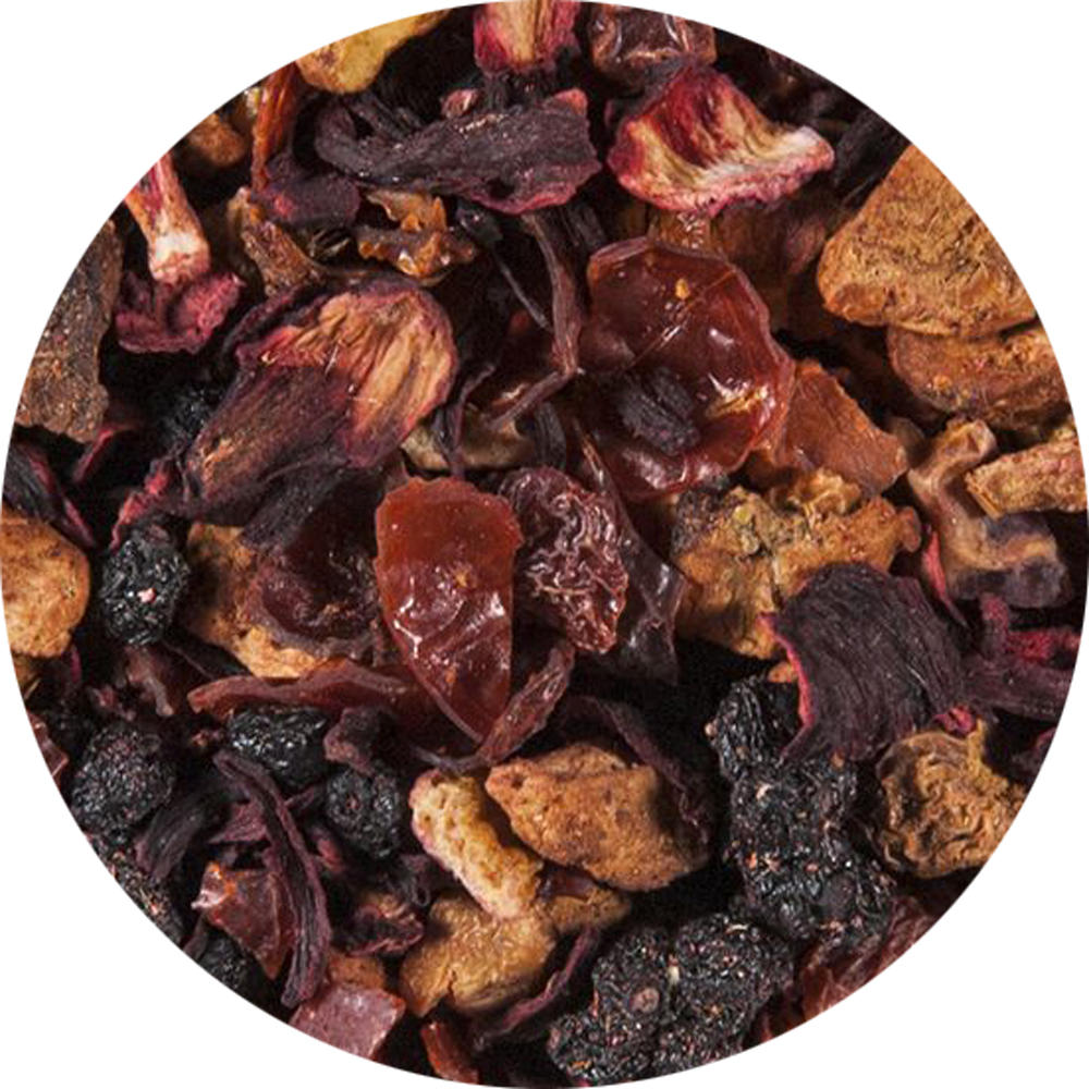 Hibiskusblüten*, Hagebuttenschalen*, Apfelstücke*, Holunderbeeren*, Orangenschalen*, natürliches Aroma(* Zutaten aus kontrolliert biologischem Anbau)