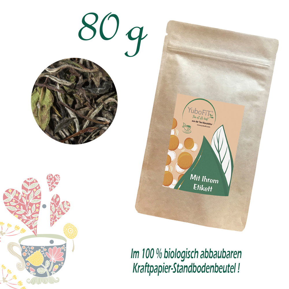 Ein perfekt gepflückter und verarbeiteter weißer Tee aus Südostchina. Er ist ein schönes Beispiel für die Pflückmethode "zwei Blätter und eine Knospe". Aufgrund seiner großen und offenen Blätter wird dieser Tee White Wings (Weiße Flügel) genannt. Der Aufguss ist blumig-duftend mit einem sehr angenehmen, milden Geschmack.