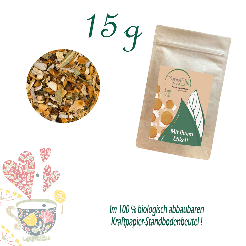 Eukalyptusblätter Bio, Holunderblüten Bio, Ingwer Bio, Minze Bio, Orange Bio, Salbeiblätter Bio