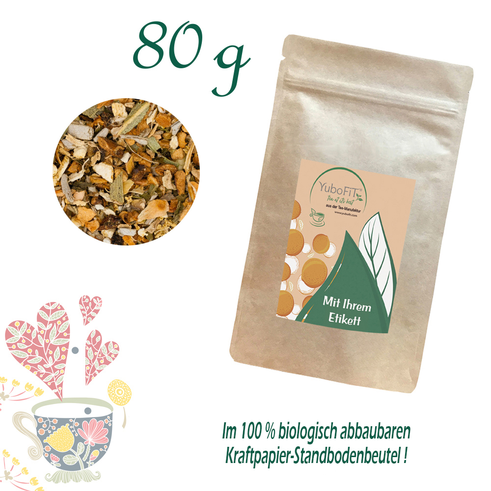 Eukalyptusblätter Bio, Holunderblüten Bio, Ingwer Bio, Minze Bio, Orange Bio, Salbeiblätter Bio
