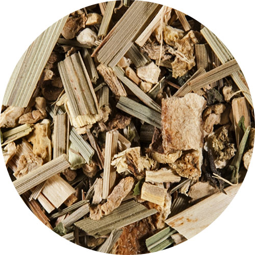 Ingwer* (30 %), Zitronengras*, Zitronenschalen* (20 %), Süßholzwurzel*, Krauseminze* (5 %)(* Zutaten aus kontrolliert biologischem Anbau) Enthält Süßholzwurzel - bei Bluthochdruck sollte ein übermäßiger Verzehr dieses Erzeugnisses vermieden werden.