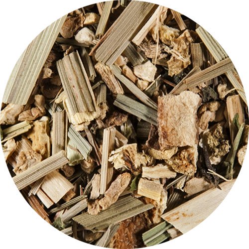 Ingwer* (30 %), Zitronengras*, Zitronenschalen* (20 %), Süßholzwurzel*, Krauseminze* (5 %)(* Zutaten aus kontrolliert biologischem Anbau) Enthält Süßholzwurzel - bei Bluthochdruck sollte ein übermäßiger Verzehr dieses Erzeugnisses vermieden werden.
